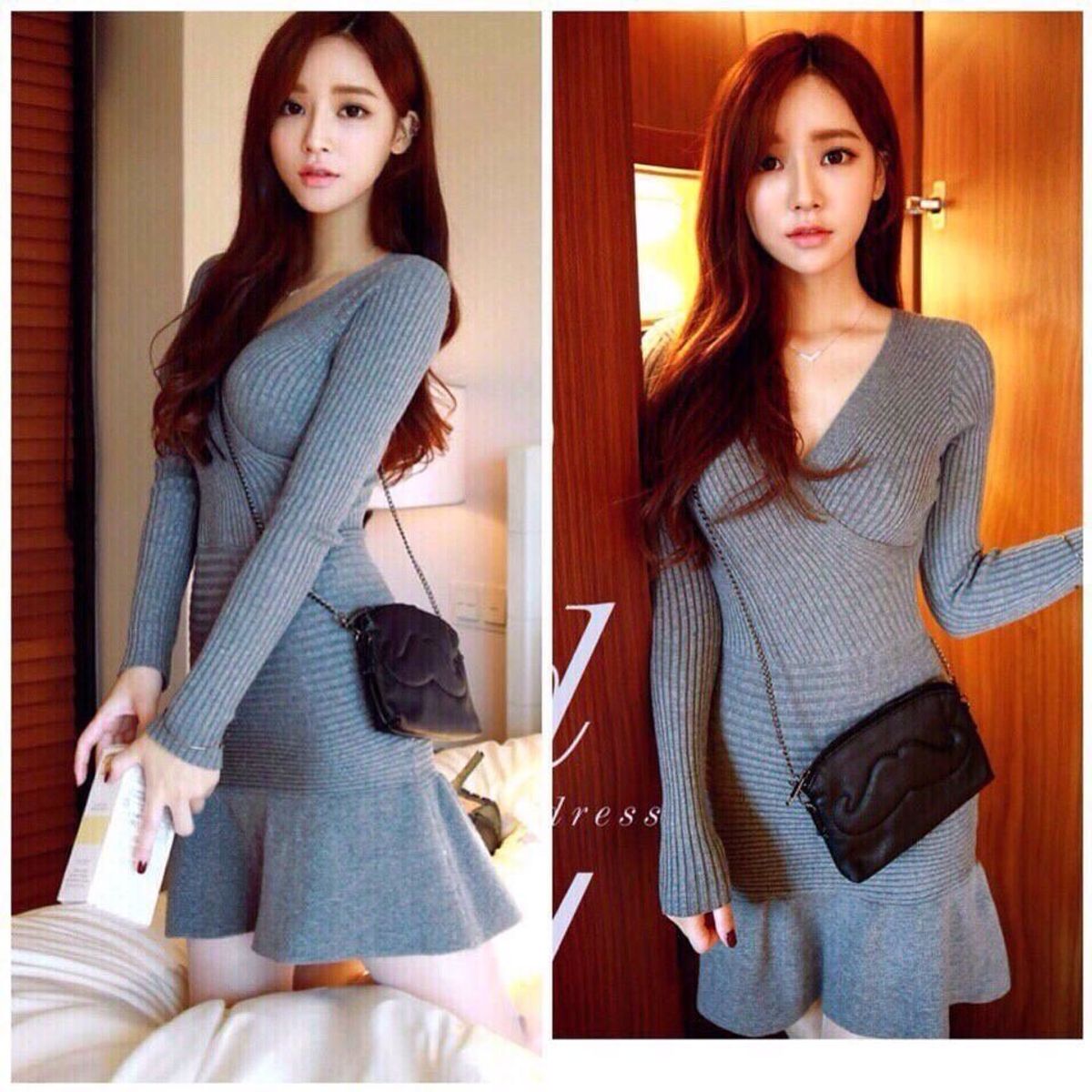 Đầm len chéo ngực đuôi tôm hot giá sỉ/bán buôn