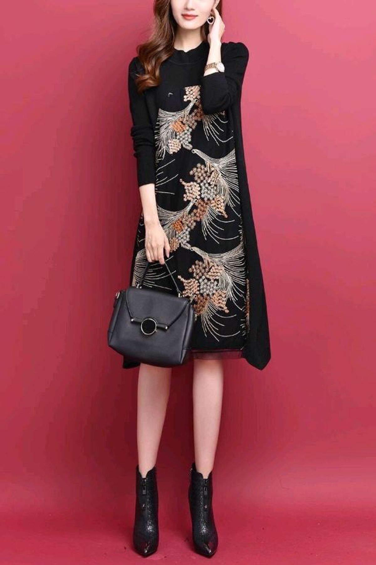 đầm len họa tiết hoa giá sỉ/bán buôn