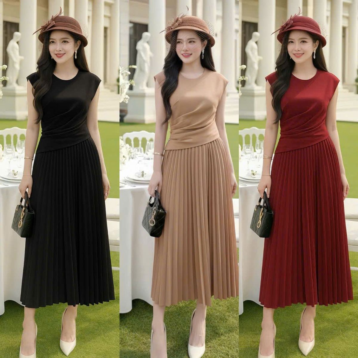 Đầm liền dự tiệc thiết kế dáng xoè, chân váy xếp ly, dự tiệc chất liệu cotton co giãn, mềm mại, sang trong B10