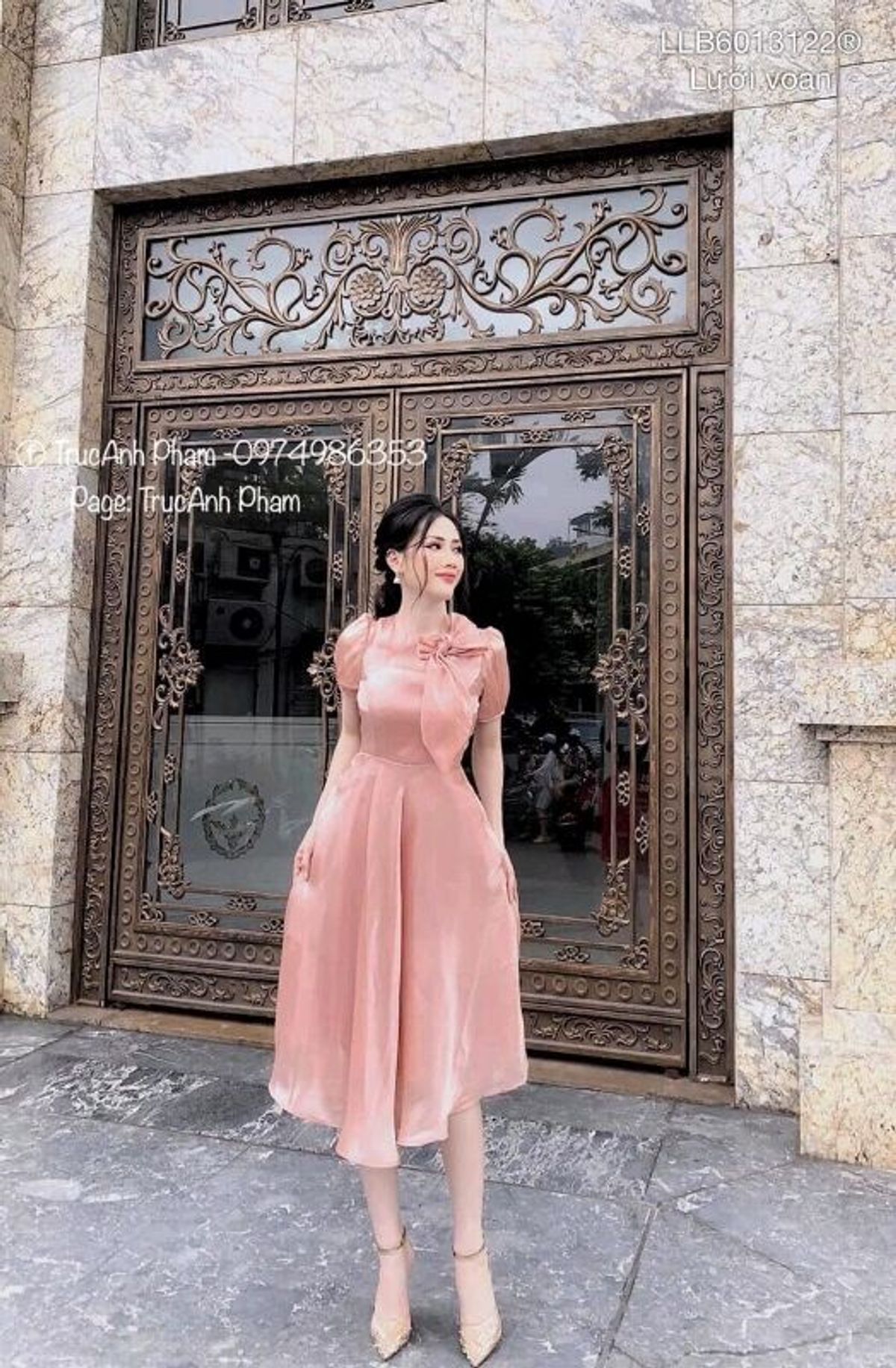 Đầm lưới xoè nơ cổ tay phồng tiểu thư sang chảnh mặc đi tiệc xinh còn gì bằng