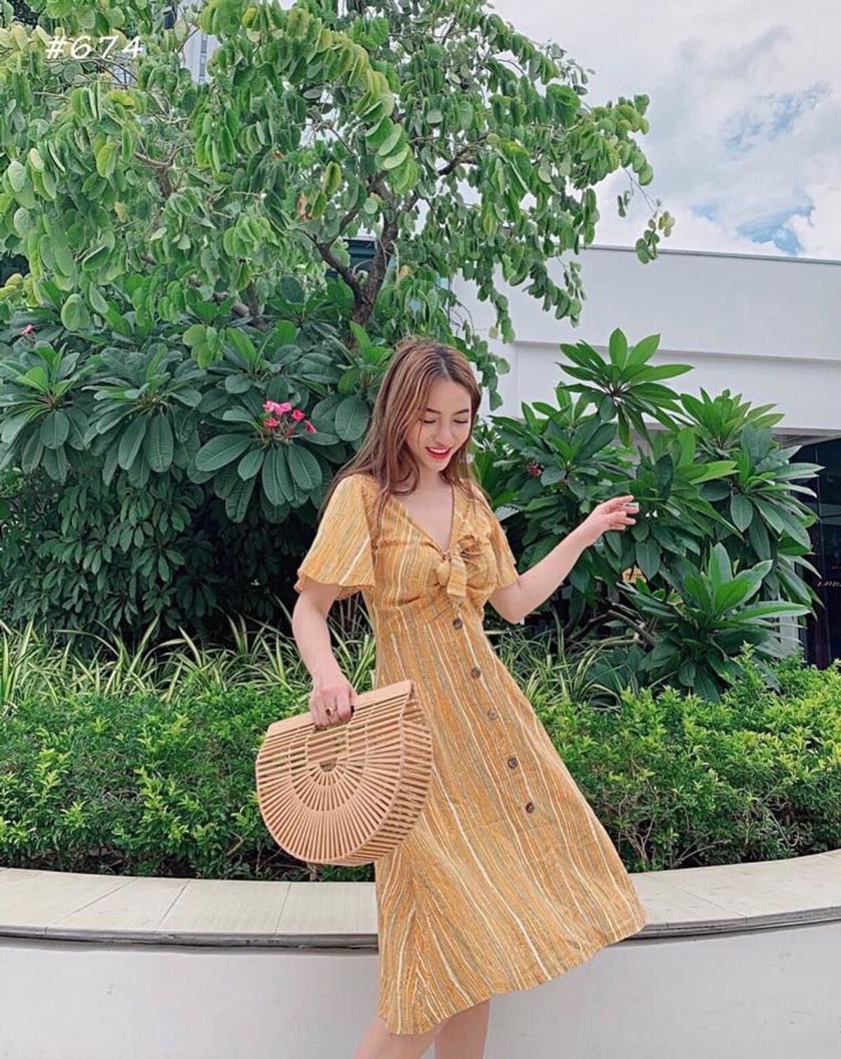 Đầm Maxi Cột Nơ Phần Ngực Tay Loe giá sỉ - giá bán buôn