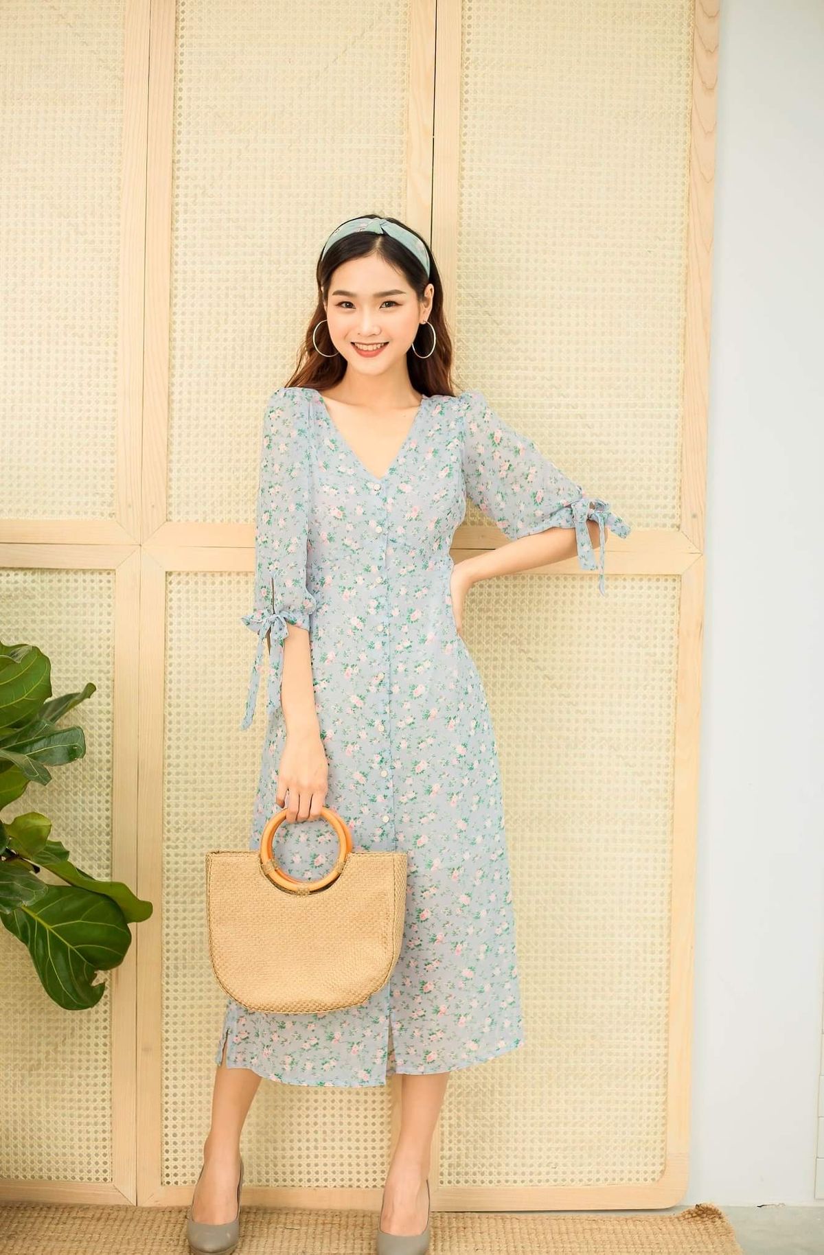 -Đầm Maxi Hoa Dáng Dài Xanh Dương nhẹ nhàng phù hợp đi dạo phố, đi chơi, đi tiệc