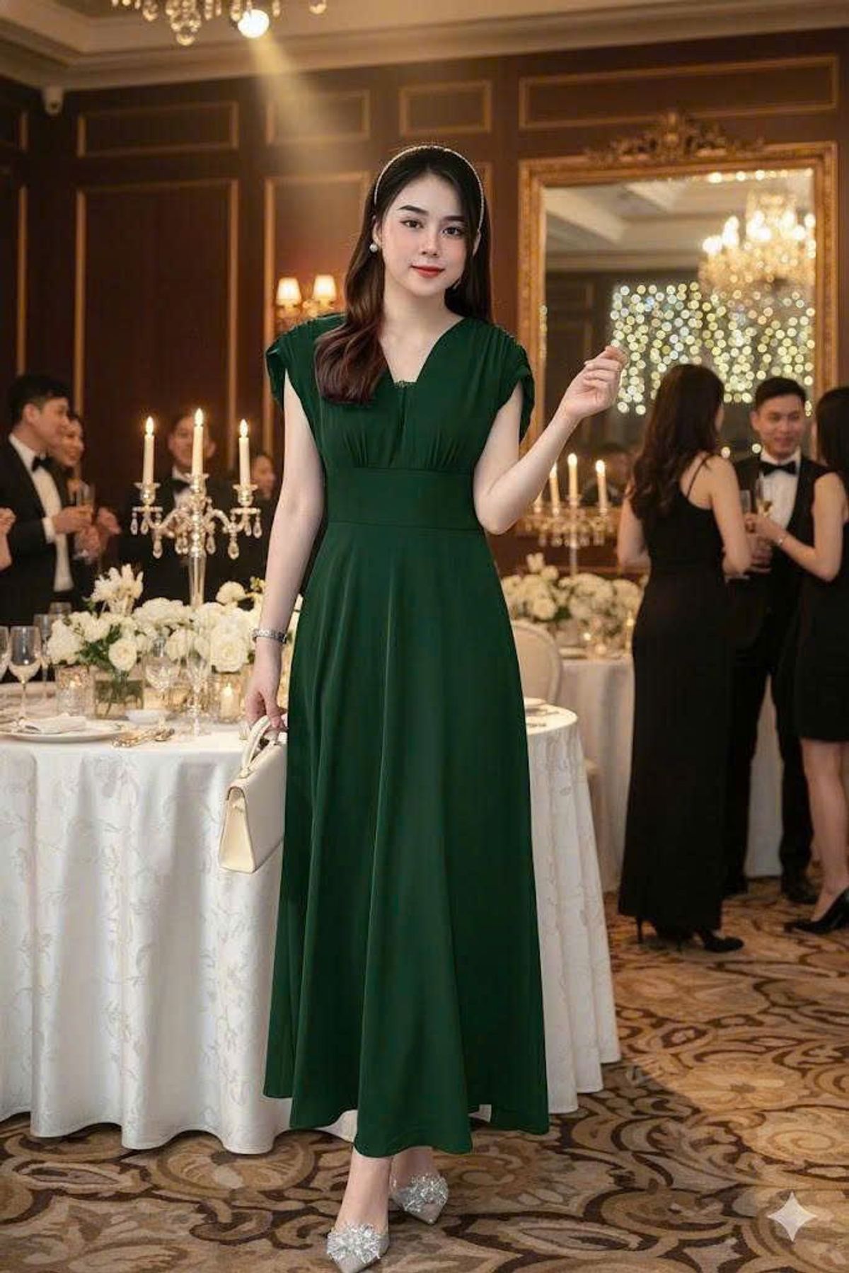 Đầm maxi cổ v nhúng tay sang trọng hàng cao cấp