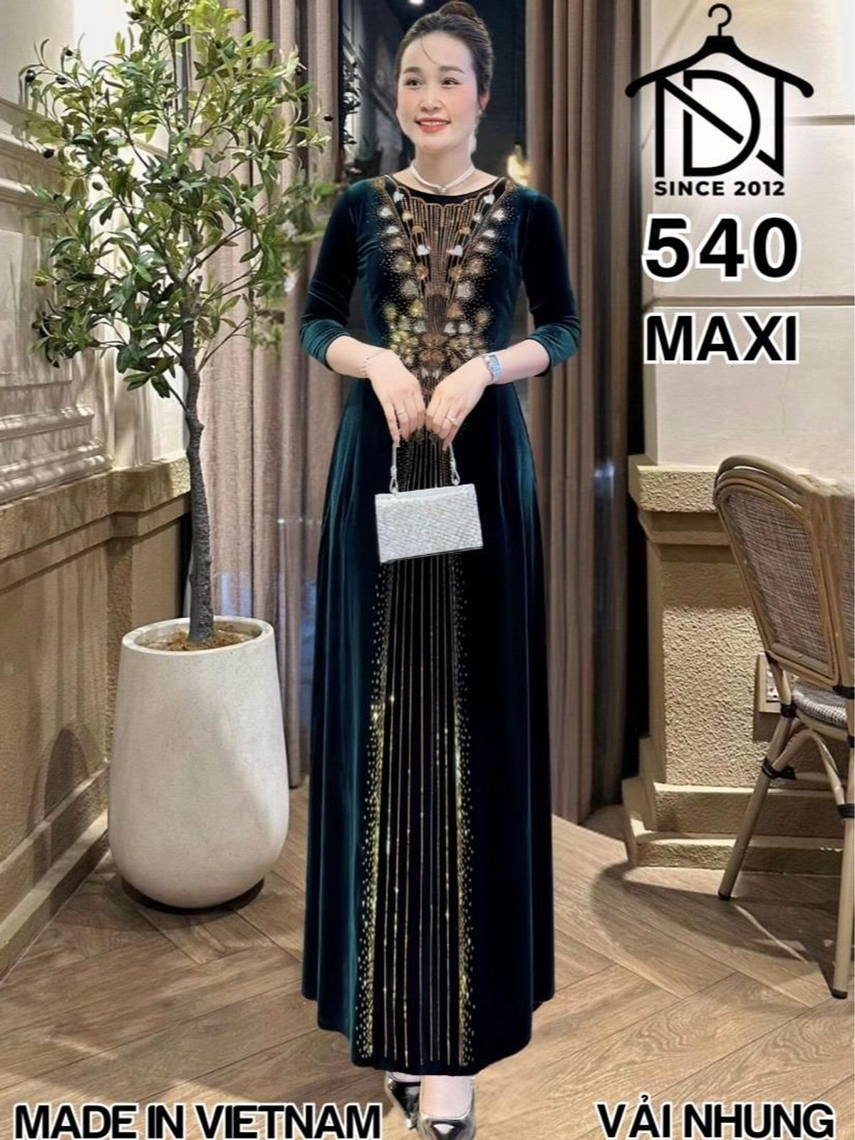 Đầm MAXI trung niên dự tiệc sang trọng vải nhung cao cấp đính đá, tặng mẹ co giãn tốt bigsize 75kg M540