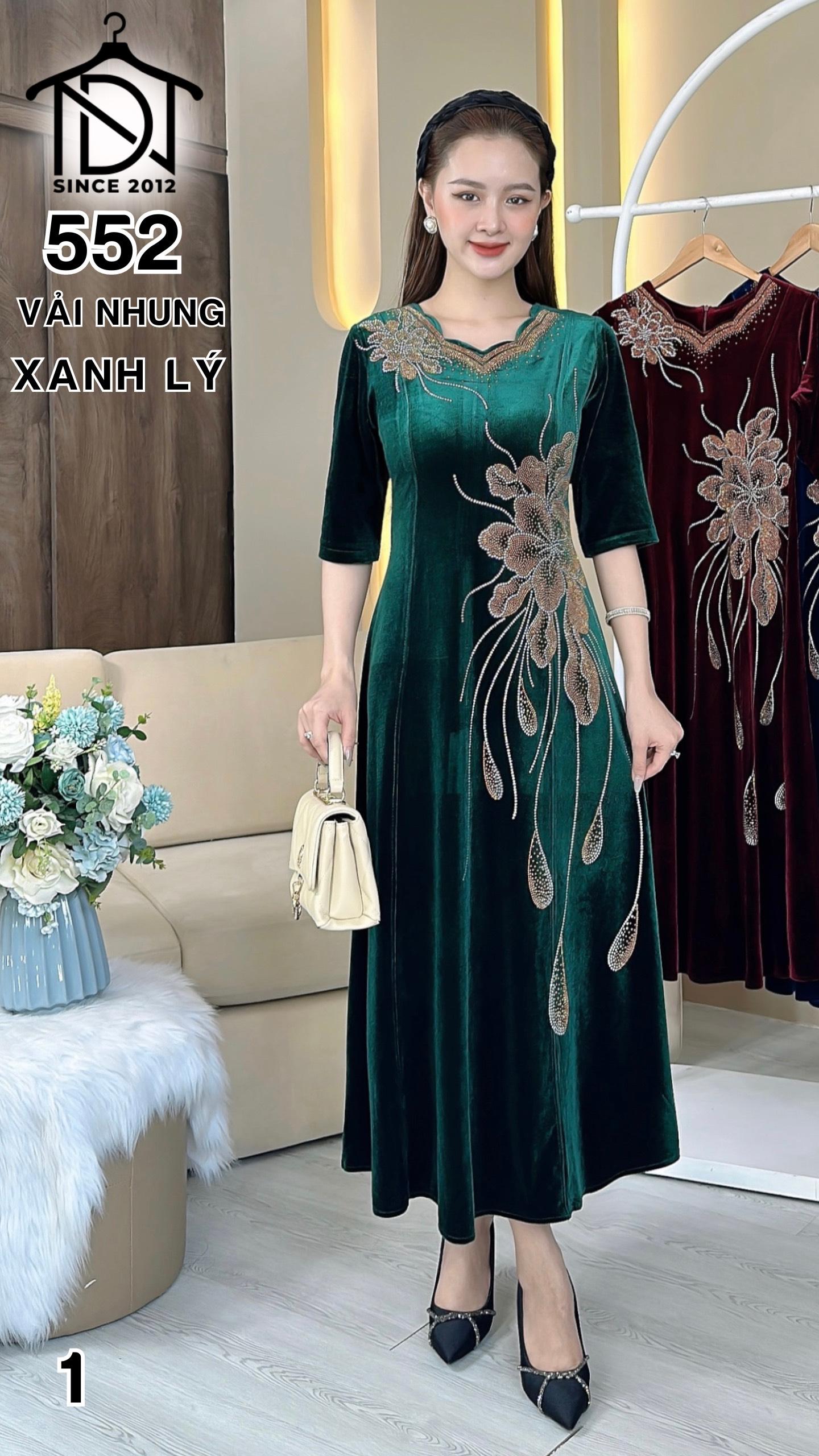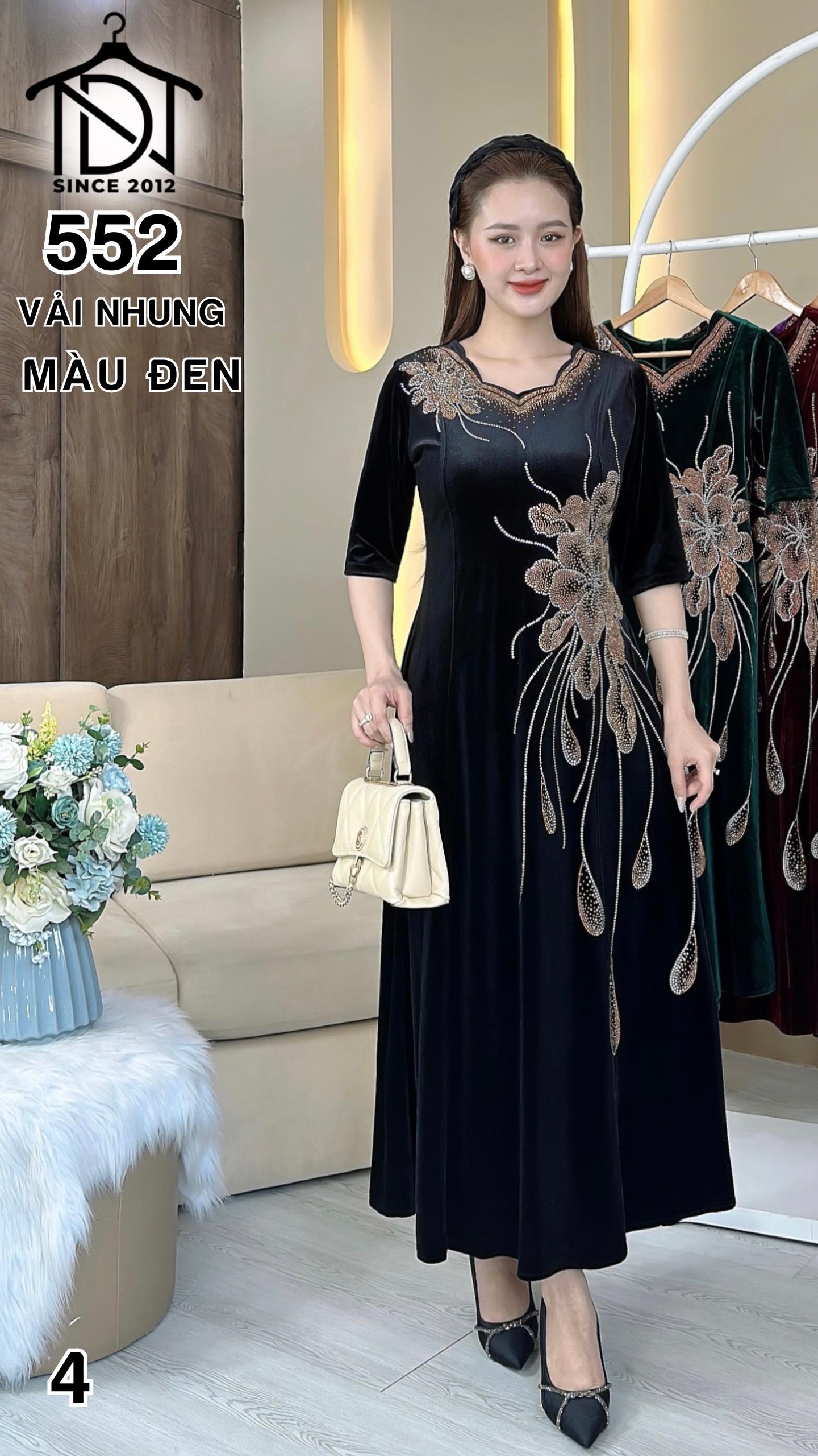 Đầm MAXI trung niên dự tiệc sang trọng vải nhung cao cấp đính đá, tặng mẹ co giãn tốt bigsize 80kg M552