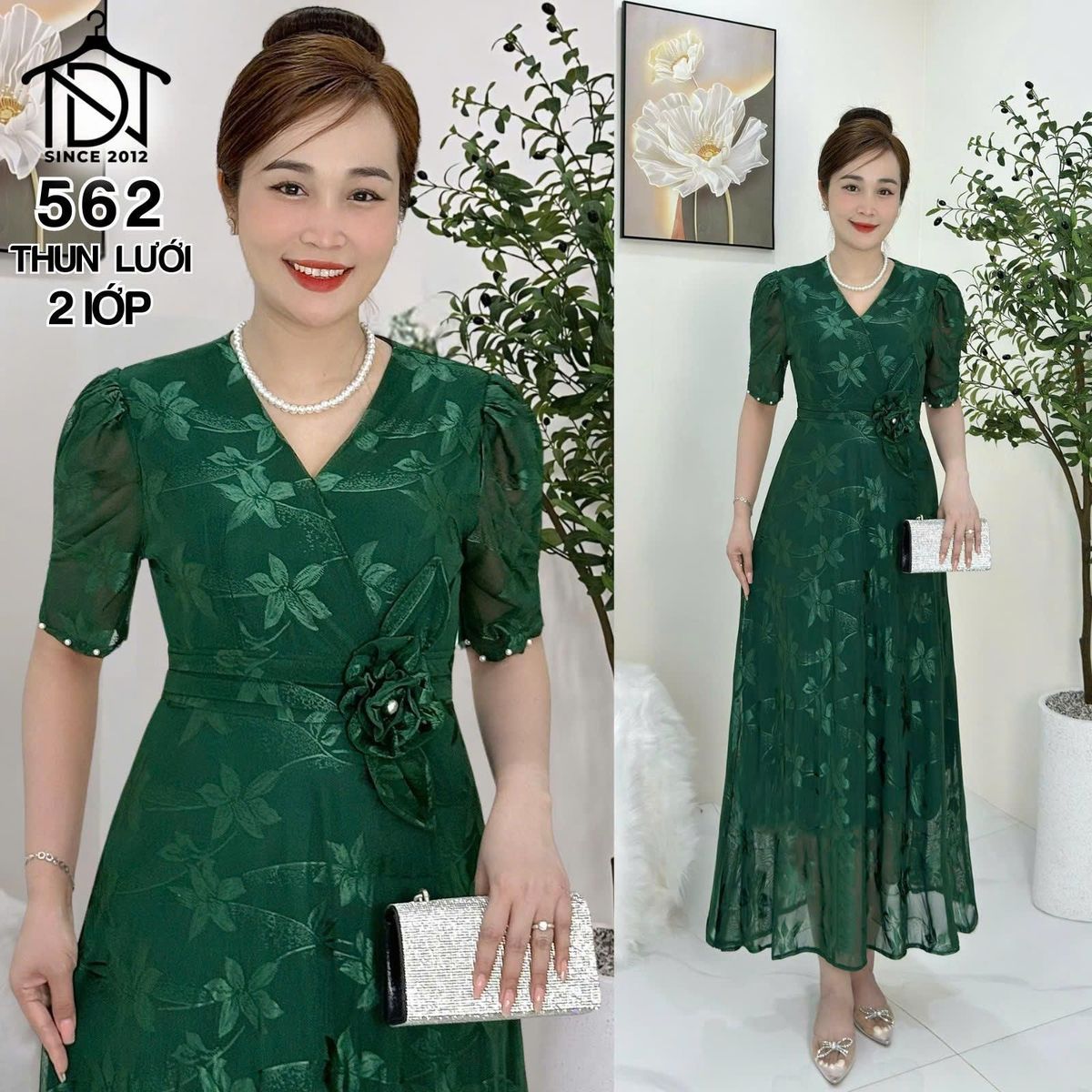 Đầm MAXI trung niên dự tiệc sang trọng vải thun lưới tặng mẹ co giãn tốt bigsize 75kg M562 giá sỉ - giá bán buôn
