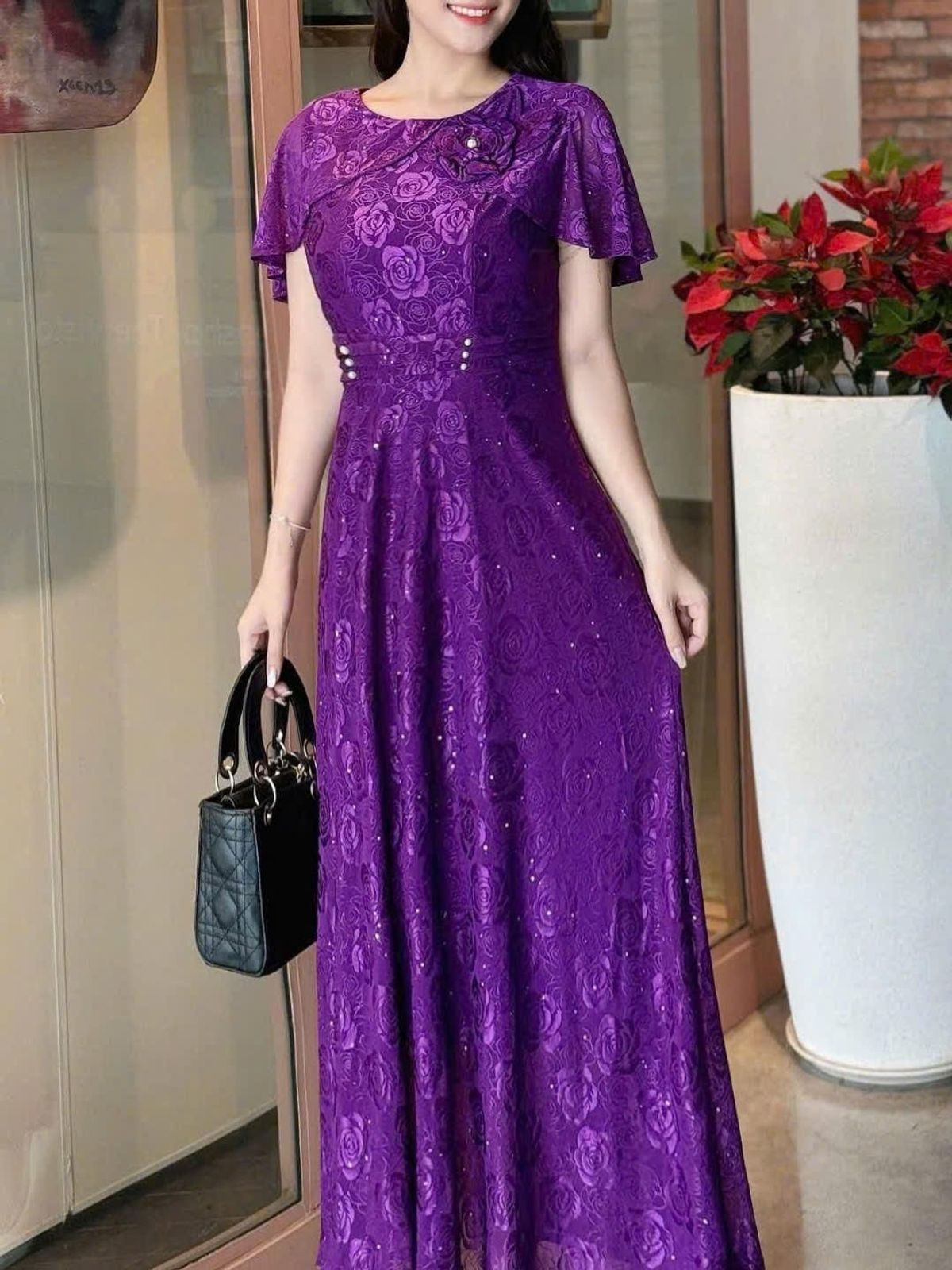 Đầm MAXI trung niên dự tiệc sang trọng vải thun lưới tặng mẹ co giãn tốt bigsize 75kg M705