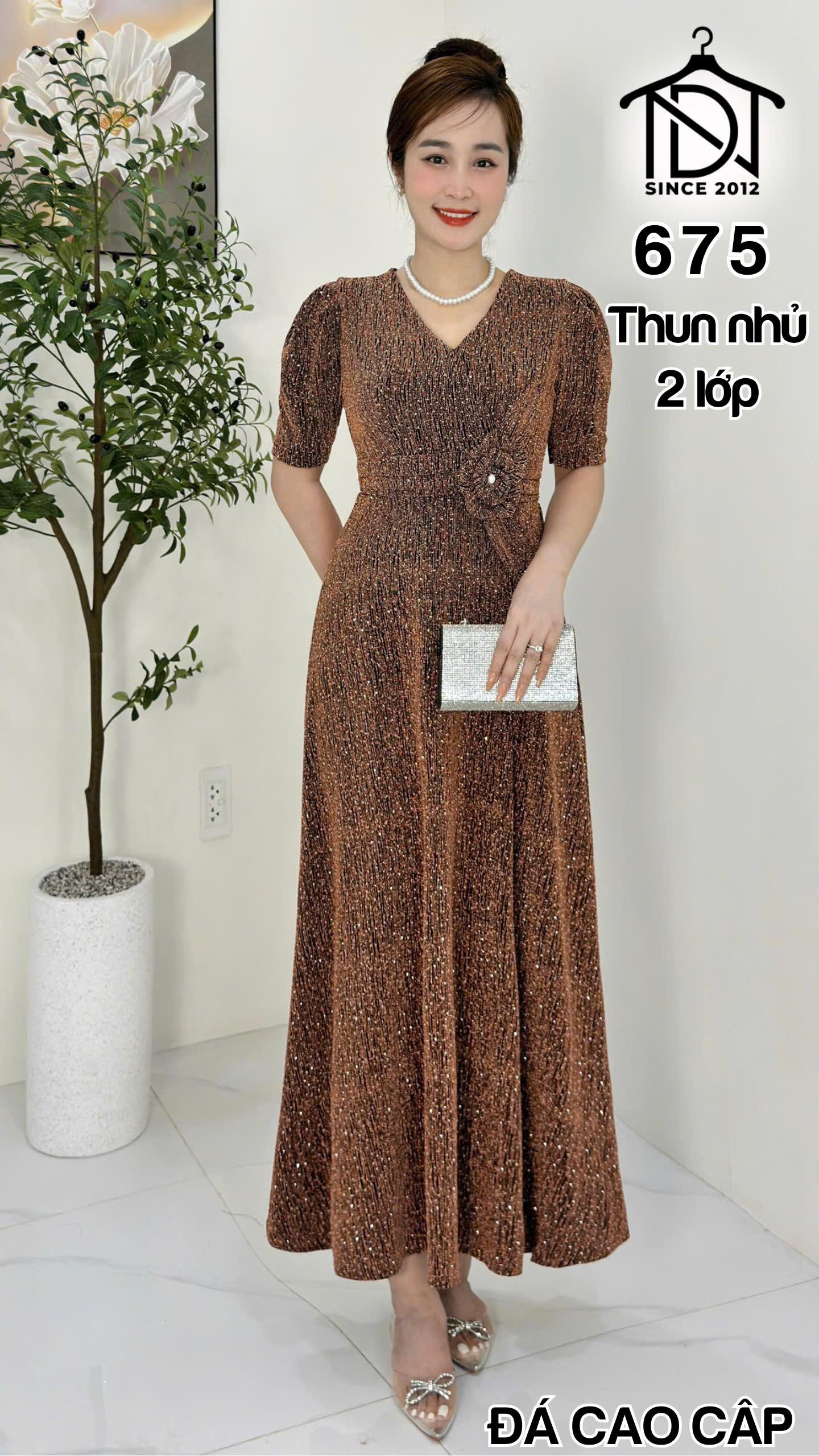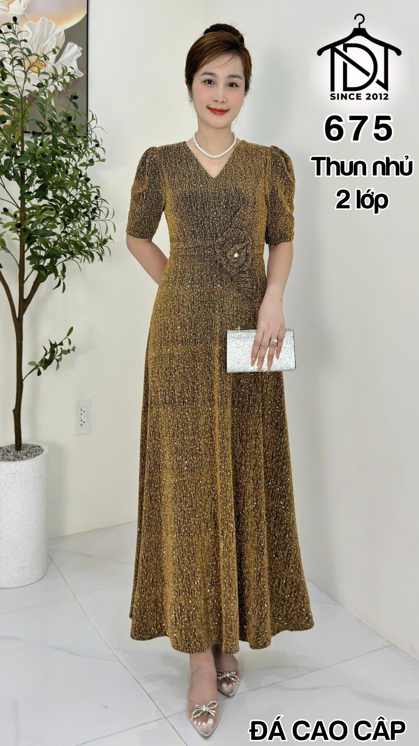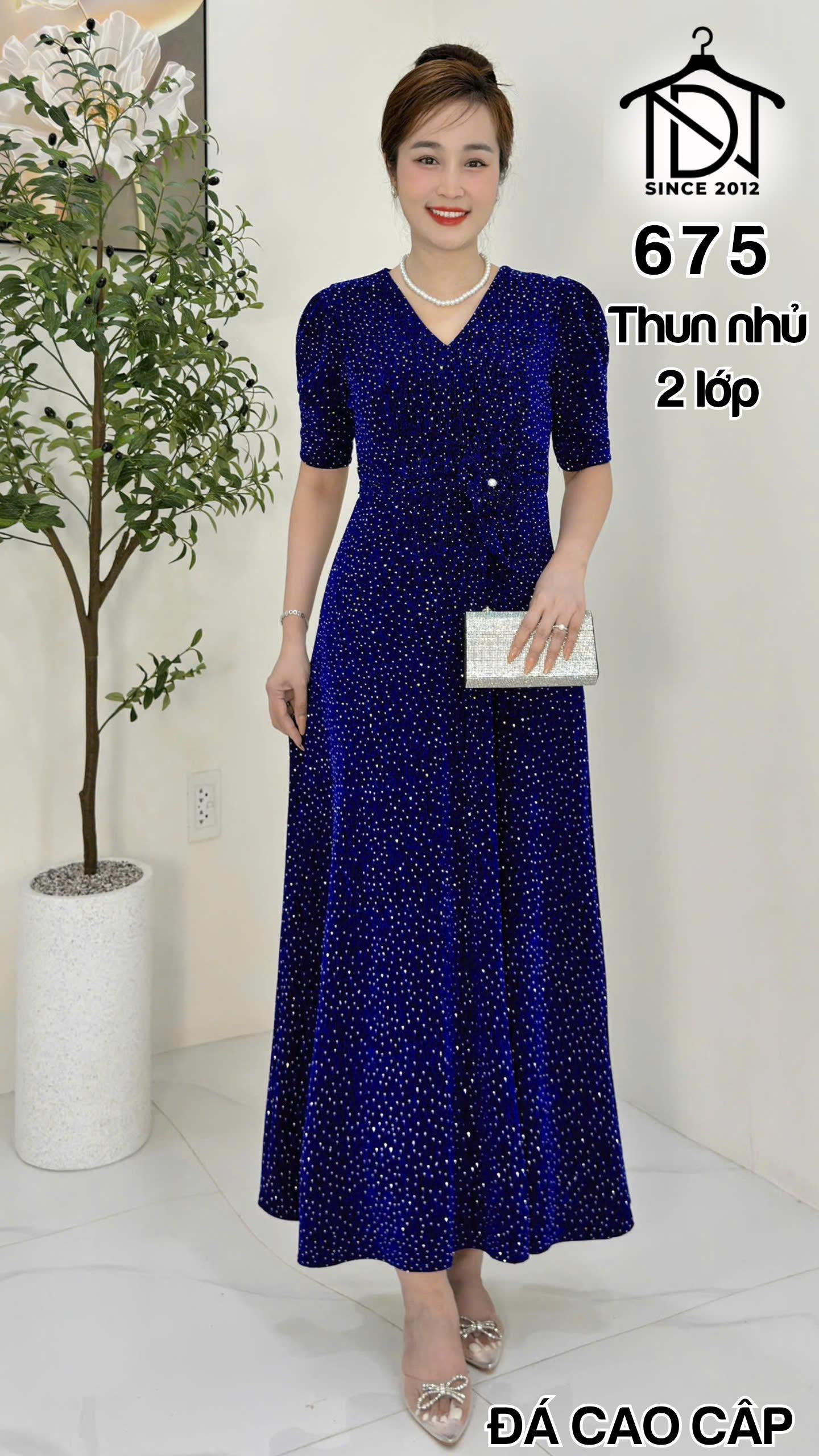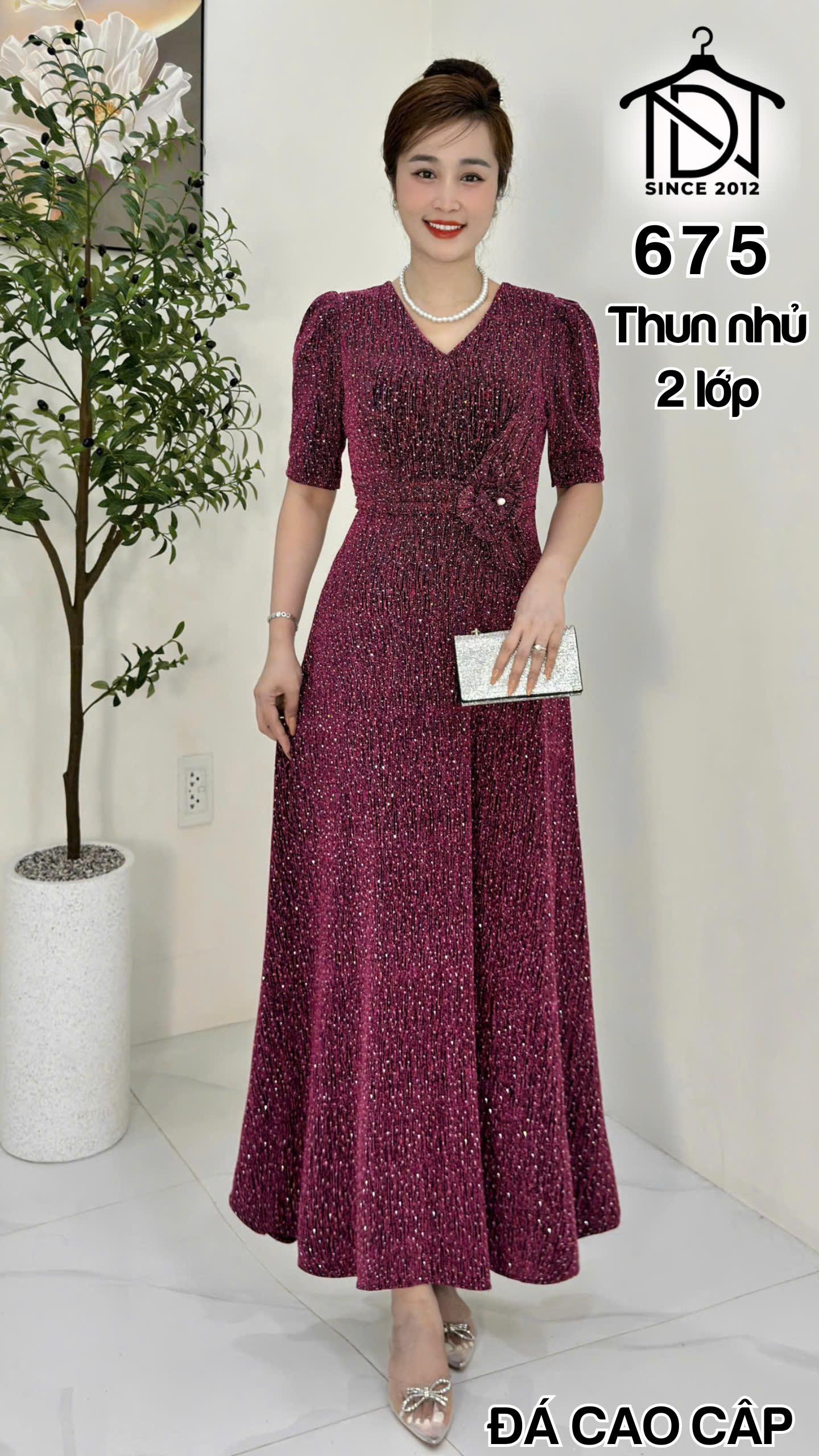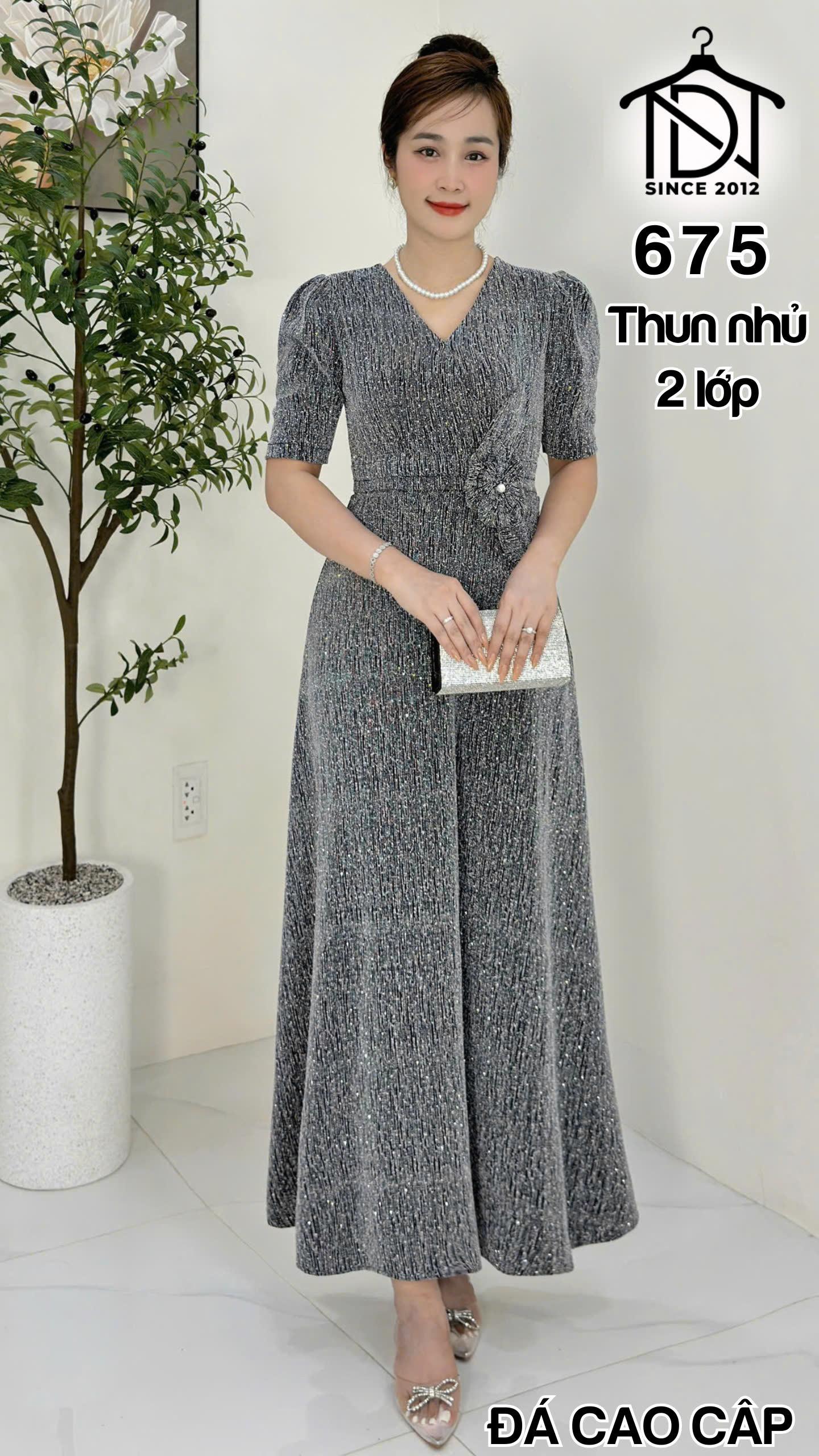 - Form váy: Đuôi suông 2 lớp, dáng maxi giúp che khuyết điểm các vòng tốt