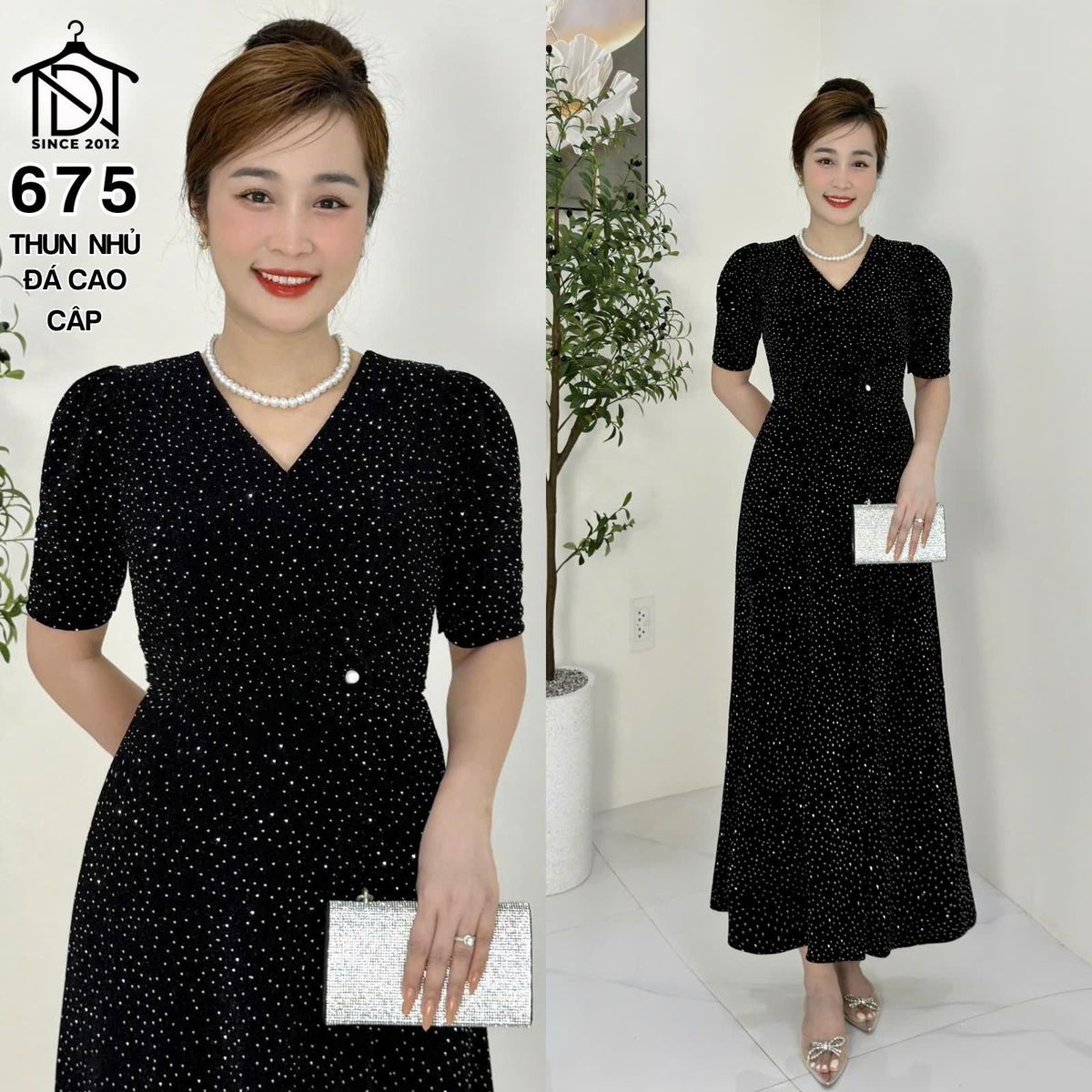 - Form váy: Đuôi suông 2 lớp, dáng maxi giúp che khuyết điểm các vòng tốt
