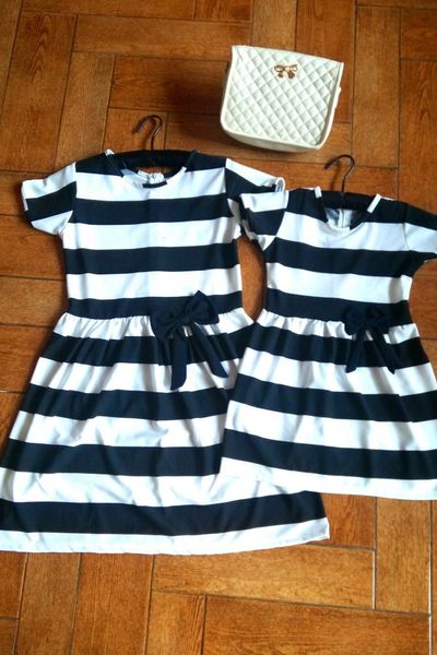 Đầm mẹ bé sọc trắng đen nơ giá sỉ/bán buôn