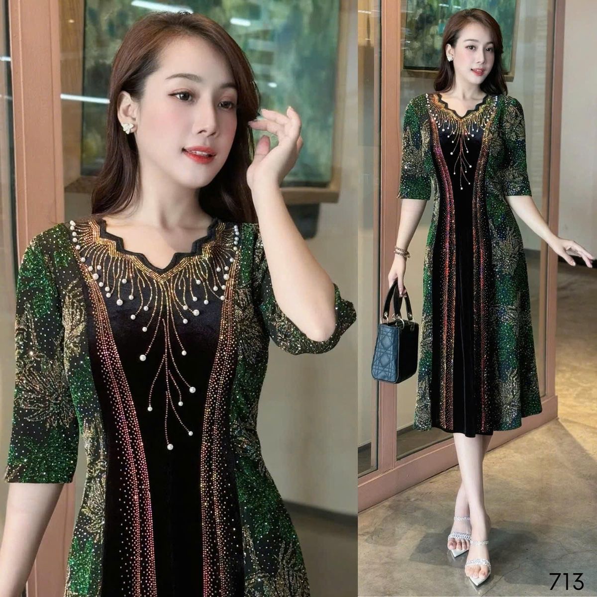 - Chất liệu: thun nhũ phối nhung co giãn, cao cấp có tính co - giãn linh hoạt