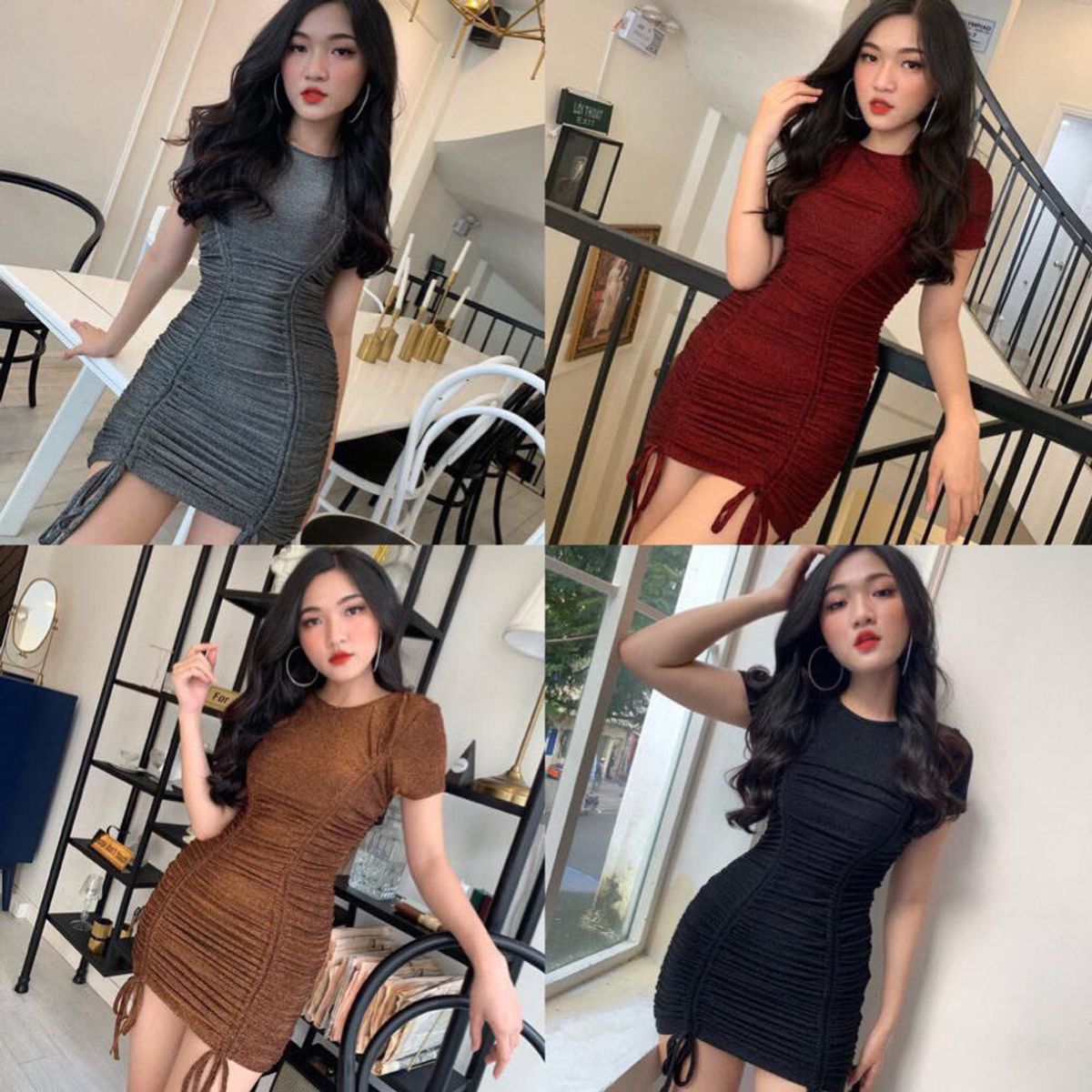 Đầm nhũ body nhún dây rút giá sỉ/bán buôn