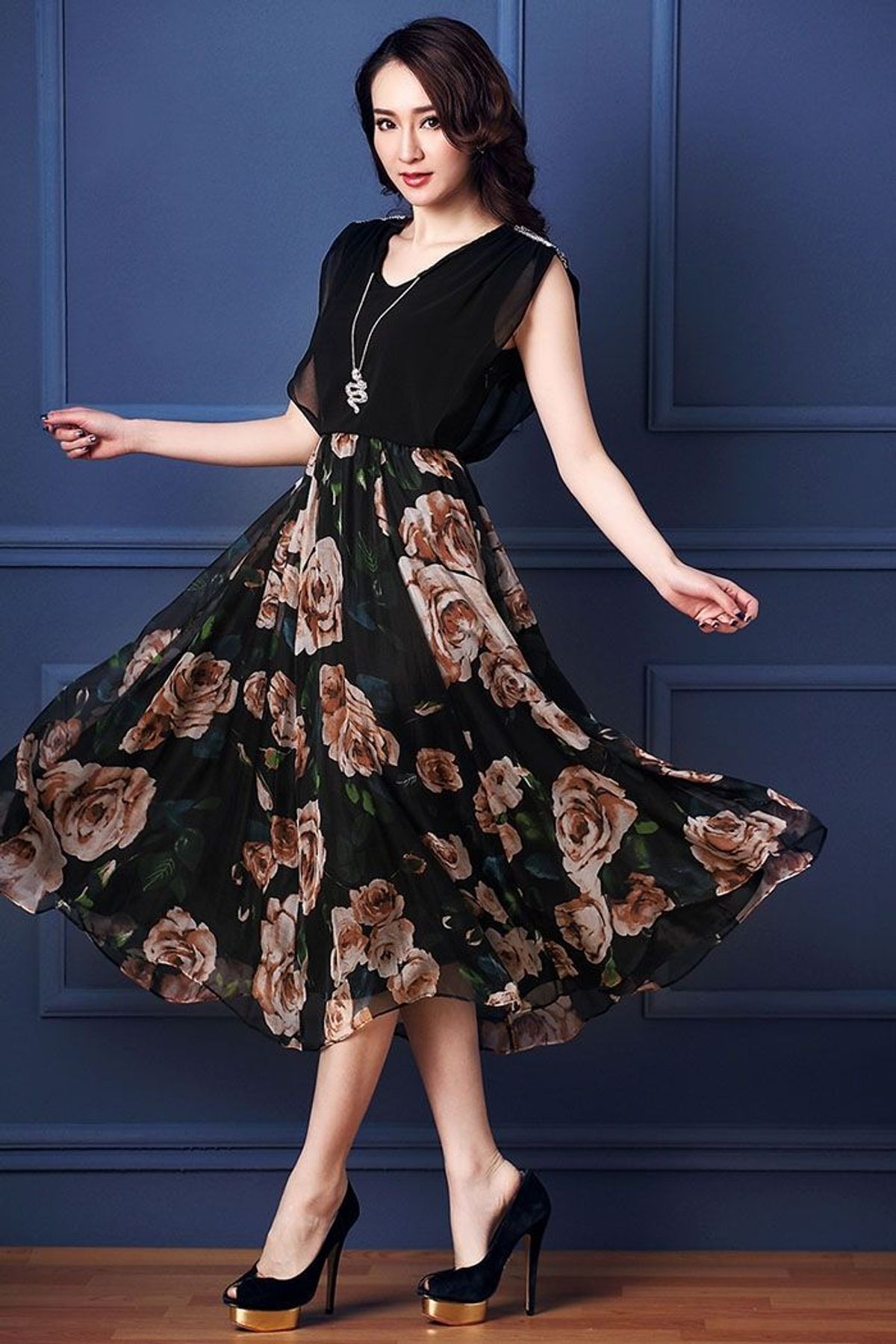 ĐẦM MAXI HOA HỒNG THỜI TRANG