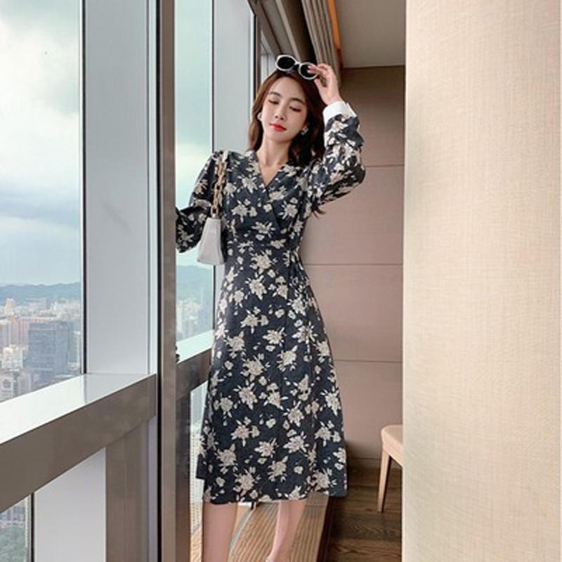 Đầm nữ maxi phong cách Hàn Quốc, vải lụa in hoa 100D cao cấp, trẻ trung kèm dây thắt eo hiện đại - L81 Kem Women giá sỉ - giá bán buôn