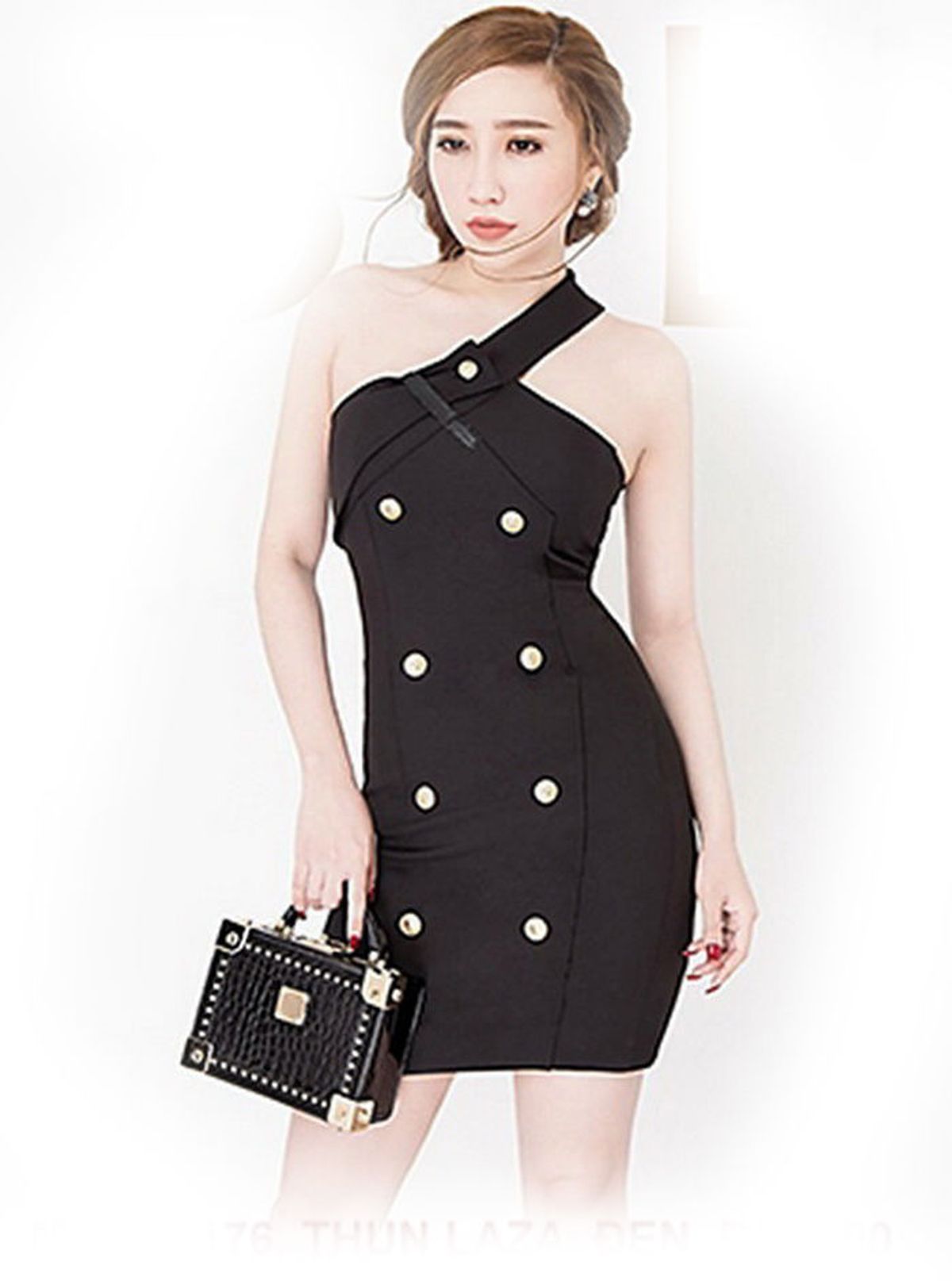 Đầm Ôm Một Vai Đính 8 Nút MS 176