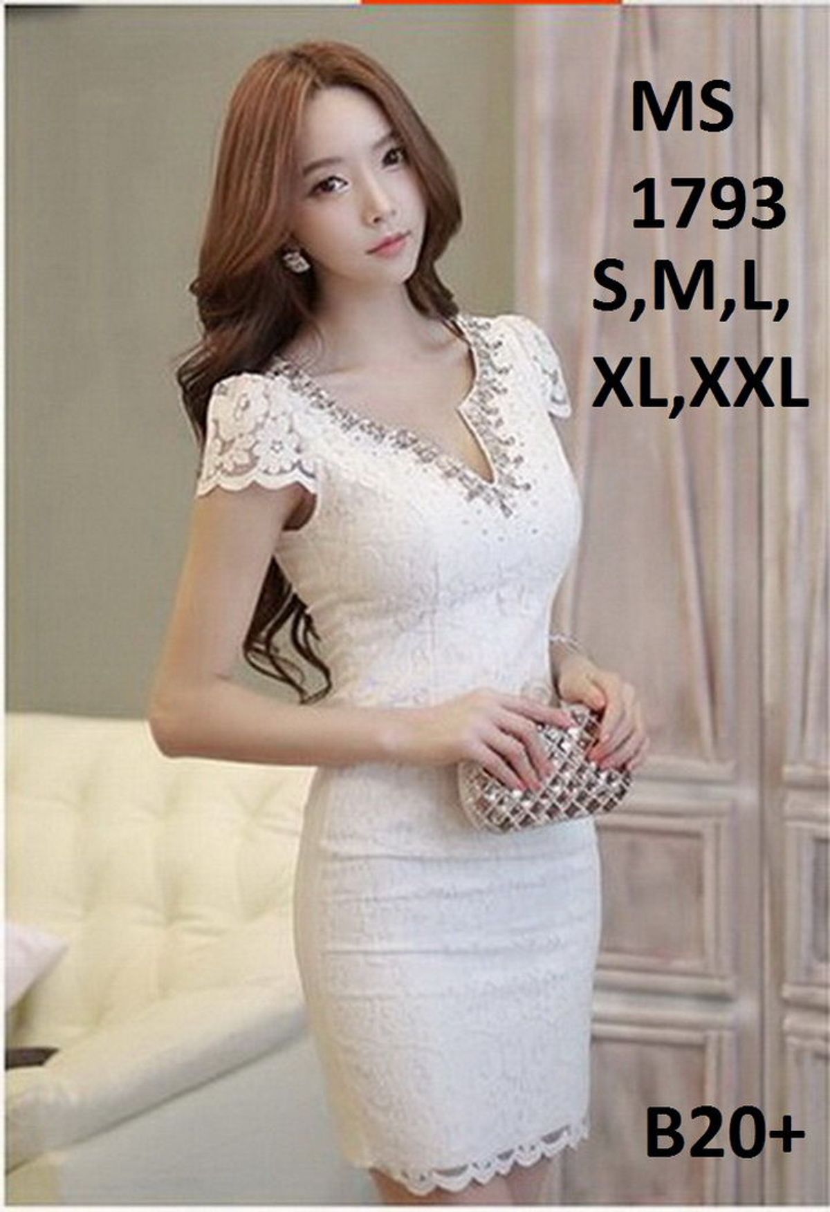 ĐẦM REN HOA CỔ ĐÍNH HẠT ĐÁ SANG TRỌNG MS 1793 giá sỉ - giá bán buôn