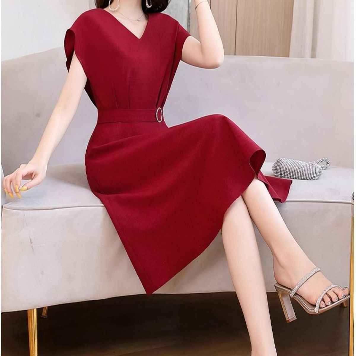 Đầm sang trong dự tiệc phong cách Hàn Quốc cao cấp co giãn bigsize dự tiệc thiết kế dáng suông đẹp L06 giá sỉ - giá bán buôn