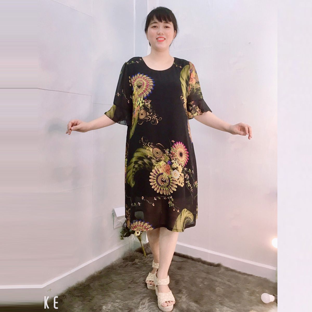 Kiểu dáng: đầm oversize in hình 3D họa tiết silk lụa mát mẻ thoải mái , đầm cổ tròn tay loe lửng đơn giản, chất vải được may 2 lớp đầm dáng suông ko kén dáng đặc biệt dành cho những cô nàng mũm mỉm