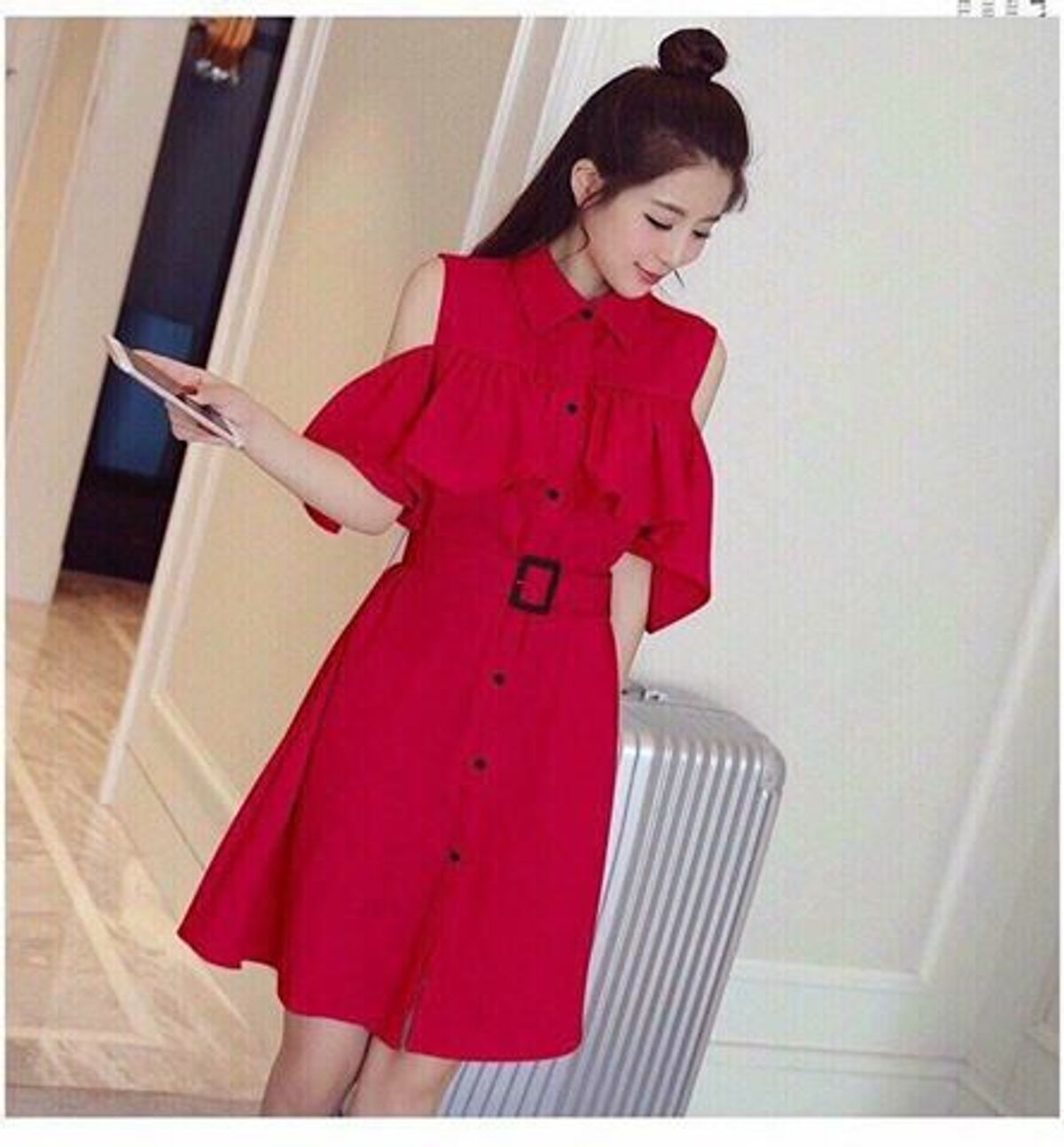 Đầm sơmi kiểu trễ vai siêu xinh siêu dễ thương đi chơi Noel là ok. Chất thun cát Hàn dày dặn co giãn tốt kèm dây nịt giúp tạo dáng thanh lịch. Có 3 màu: đỏ-xanh ngọc-tím.