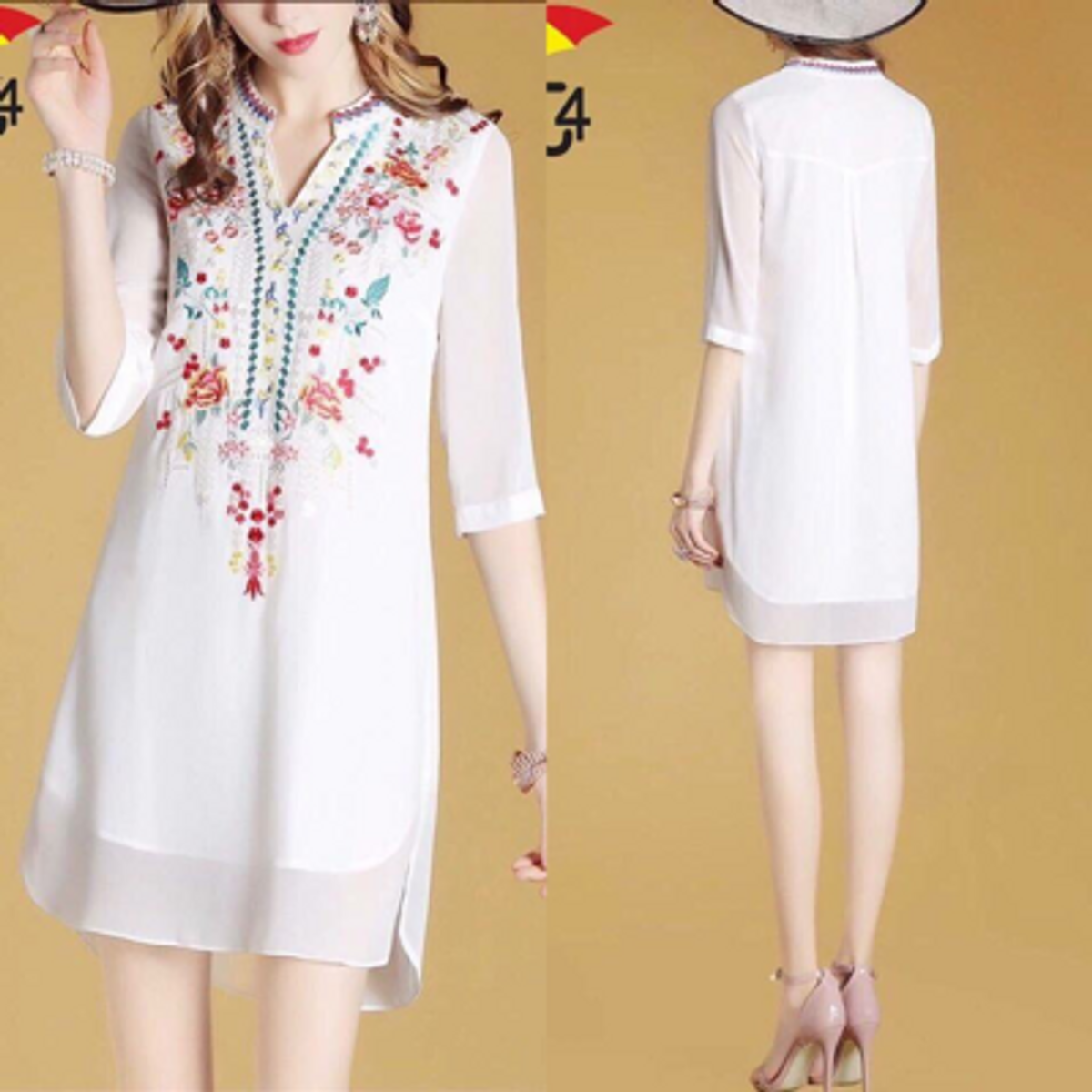 Đầm suông in họa tiết cổ xẻ giá sỉ - giá bán buôn