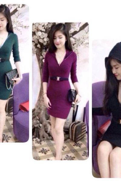 Đầm thun body tay dài phối dây kéo có nón giá sỉ - giá bán buôn