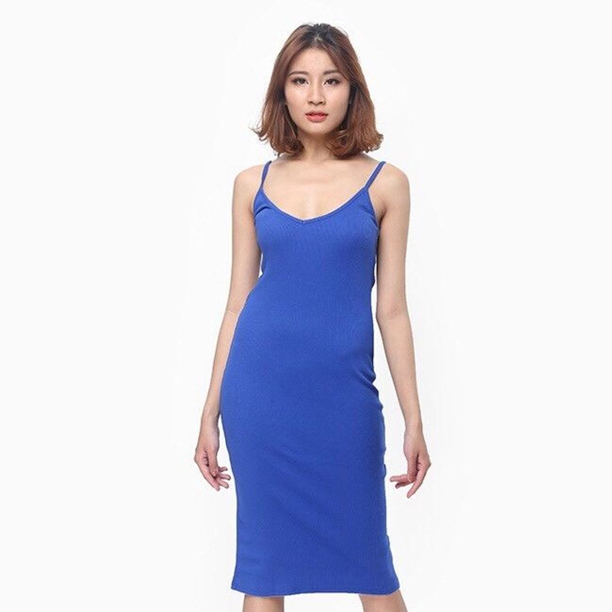 Đầm thun gân 2 dây màu xanh giá sỉ - giá bán buôn