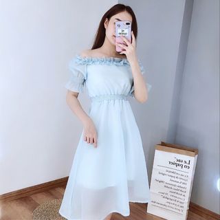 -đầm trễ vai tay ngắn với 2 màu xanh dương,trắng
