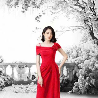 Đầm trễ vai kèm bông xếp bụng cao cấp