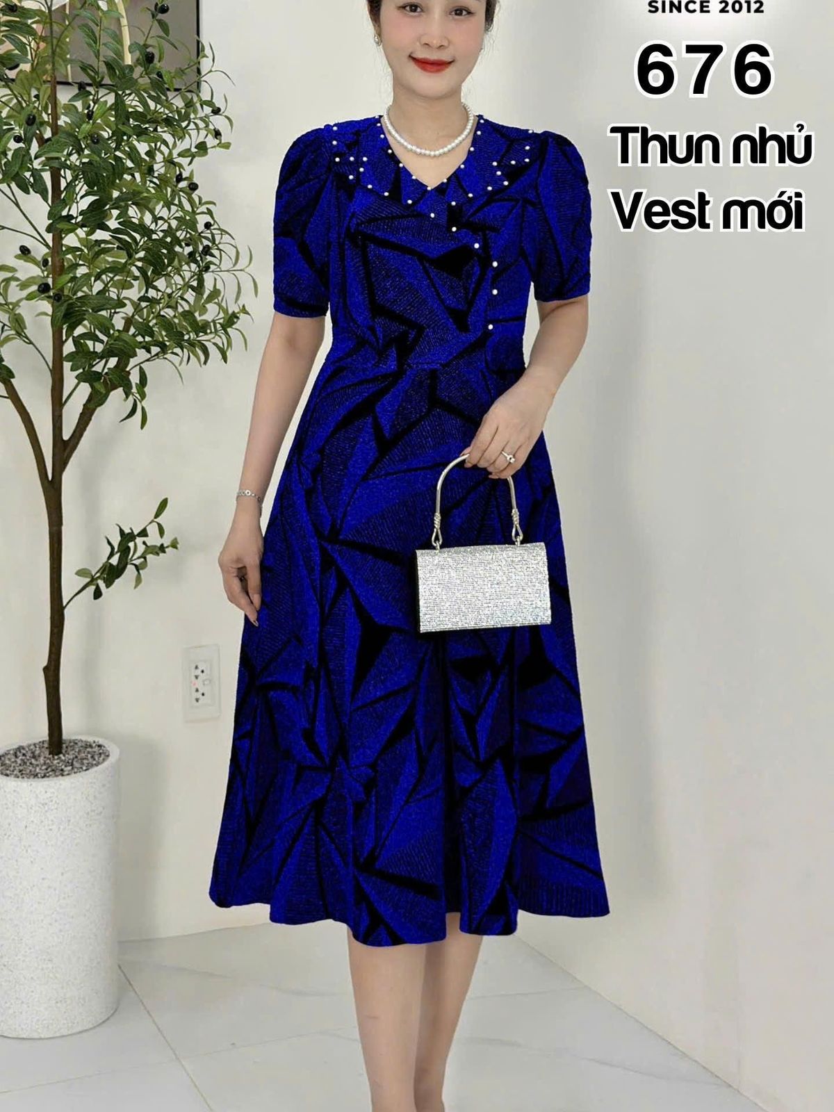 Đầm trung niên dự tiệc sang trọng vải kim tuyến nhũ kim sa đính đá tặng mẹ co giãn tốt bigsize 80kg M676 giá sỉ - giá bán buôn
