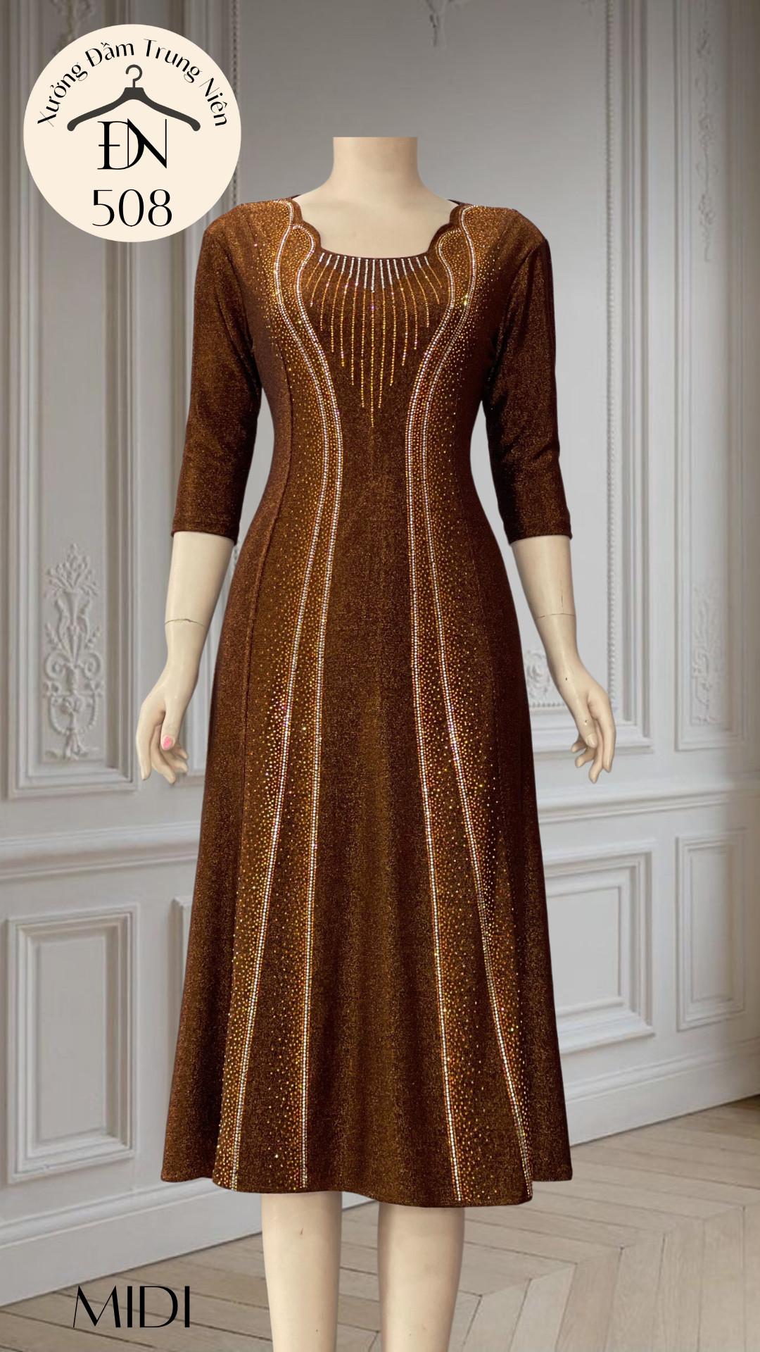 Đầm trung niên dự tiệc sang trọng vải nhũ cao cấp đính đá, tặng mẹ co giãn tốt bigsize 80kg M508