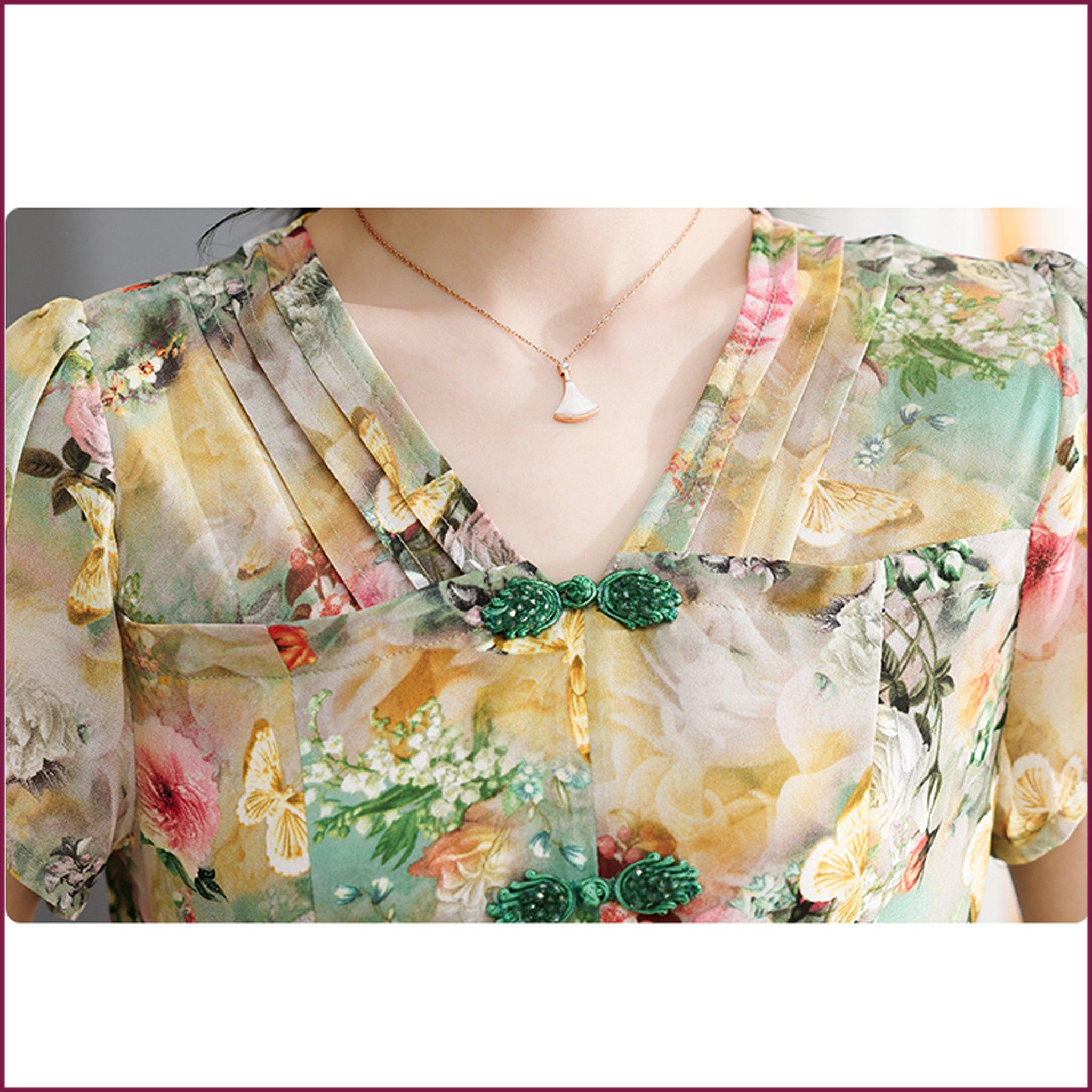 Đầm trung niên sang trọng cho mẹ bigsize phong cách Quảng Châu, lụa hoa mềm mại, thiết kế dáng suông đẹp cao cấp dự tiệc - P07