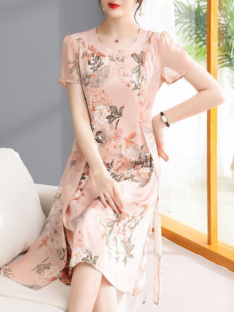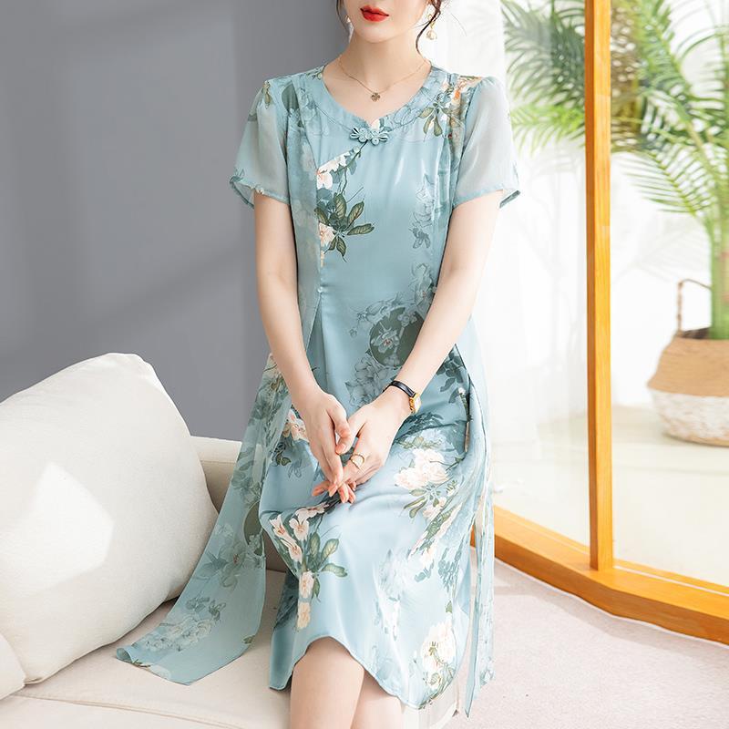 Đầm trung niên sang trọng cho mẹ bigsize phong cách Quảng Châu thiết kế dáng suông đẹp cao cấp dự tiệc -P10