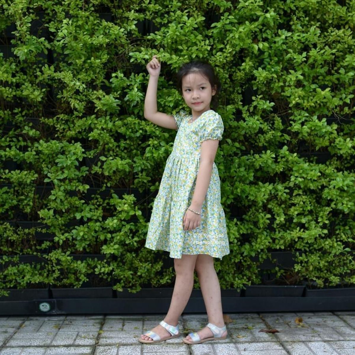 Đầm bé gái vải thô xanh da trời, họa tiết bướm cotton 100% ( DB01)