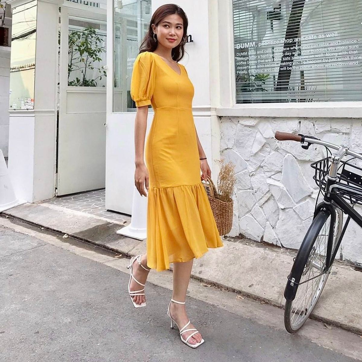 TÊN SẢN PHẨM: ĐẦM VÀNG CỔ V ĐUÔI CÁ
