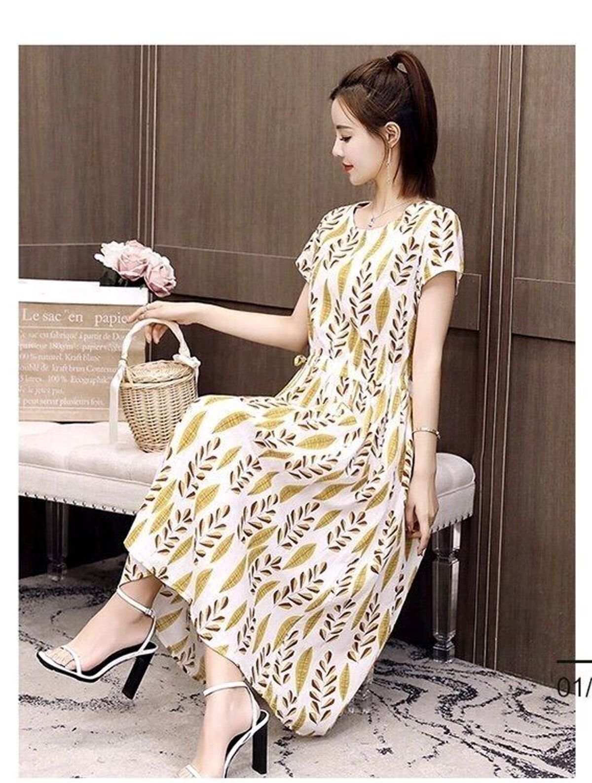 ĐẦM VINTAGE HOẠ TIẾT LÁ VÀNG