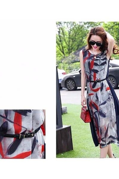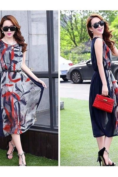 Đầm voan họa tiết lá dv2438 giá sỉ - giá bán buôn
