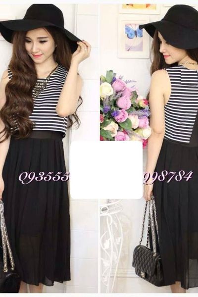 Đầm voan xòe áo sọc h2 giá sỉ/bán buôn