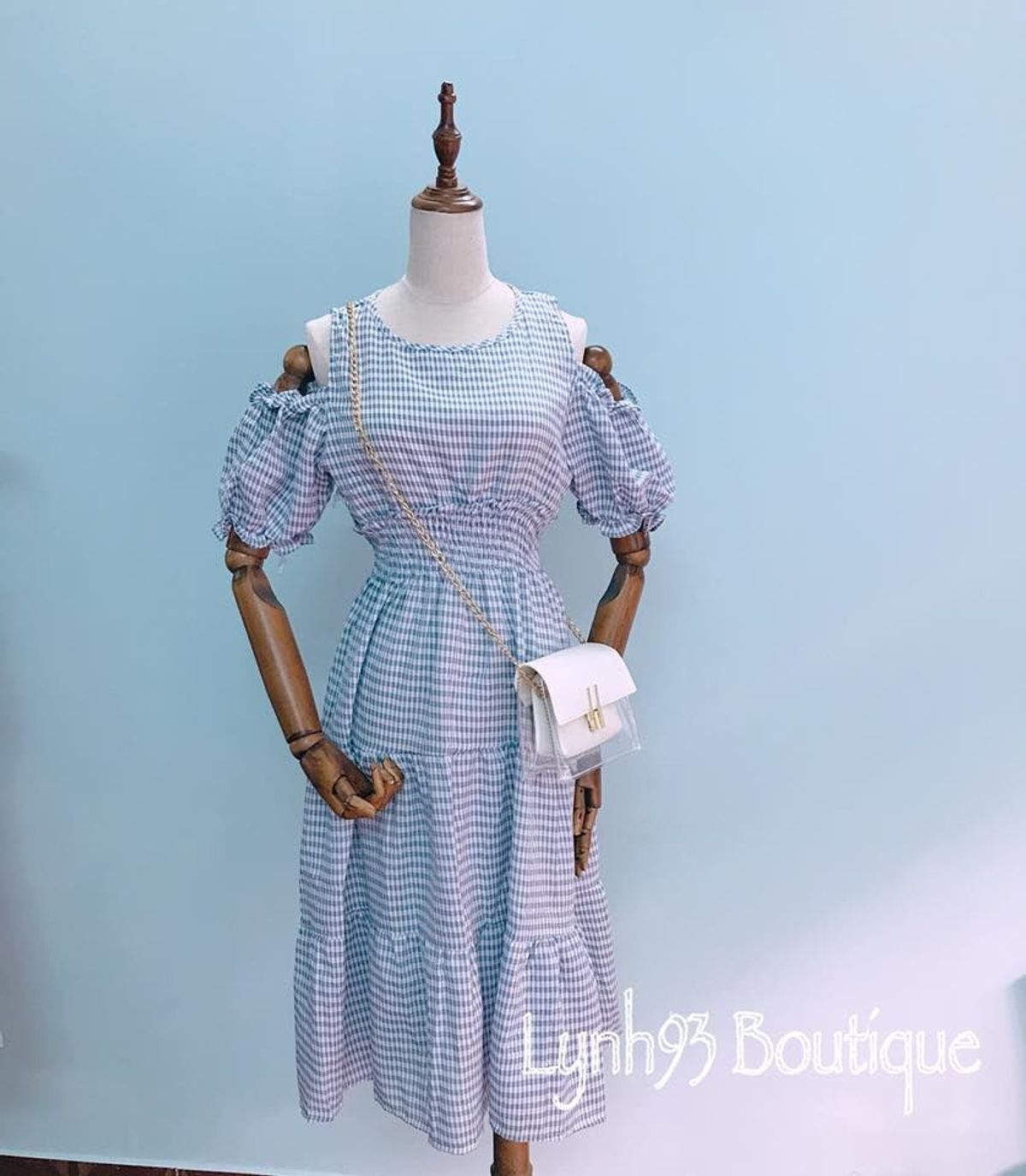 ĐẦM XÒE CARO HỞ VAI 3 MÀU FREE SIZE