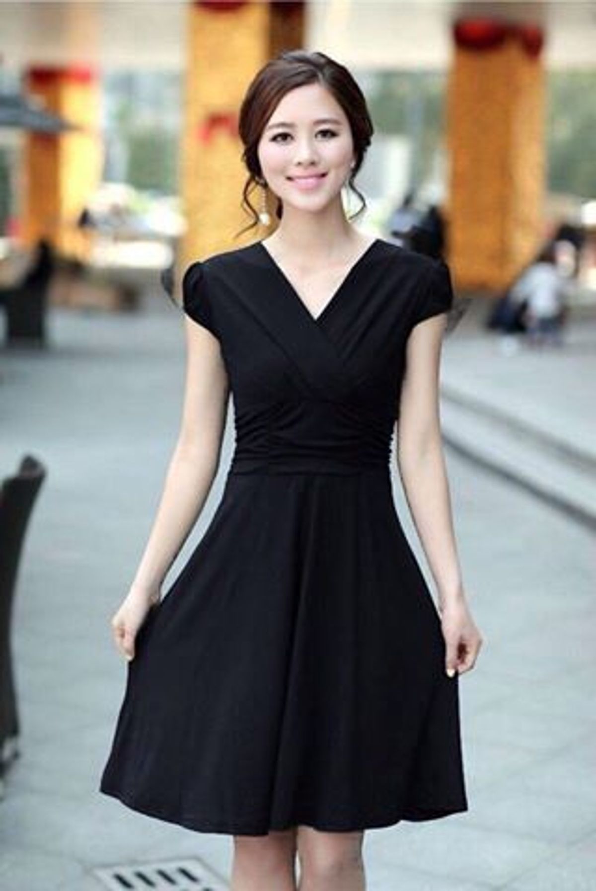 Kiểu dáng: xòe, có nhúng eo Màu sắc: đen Chất liệu: thun rayon Kích thước: một size 46~54kg eo 70 dài 86