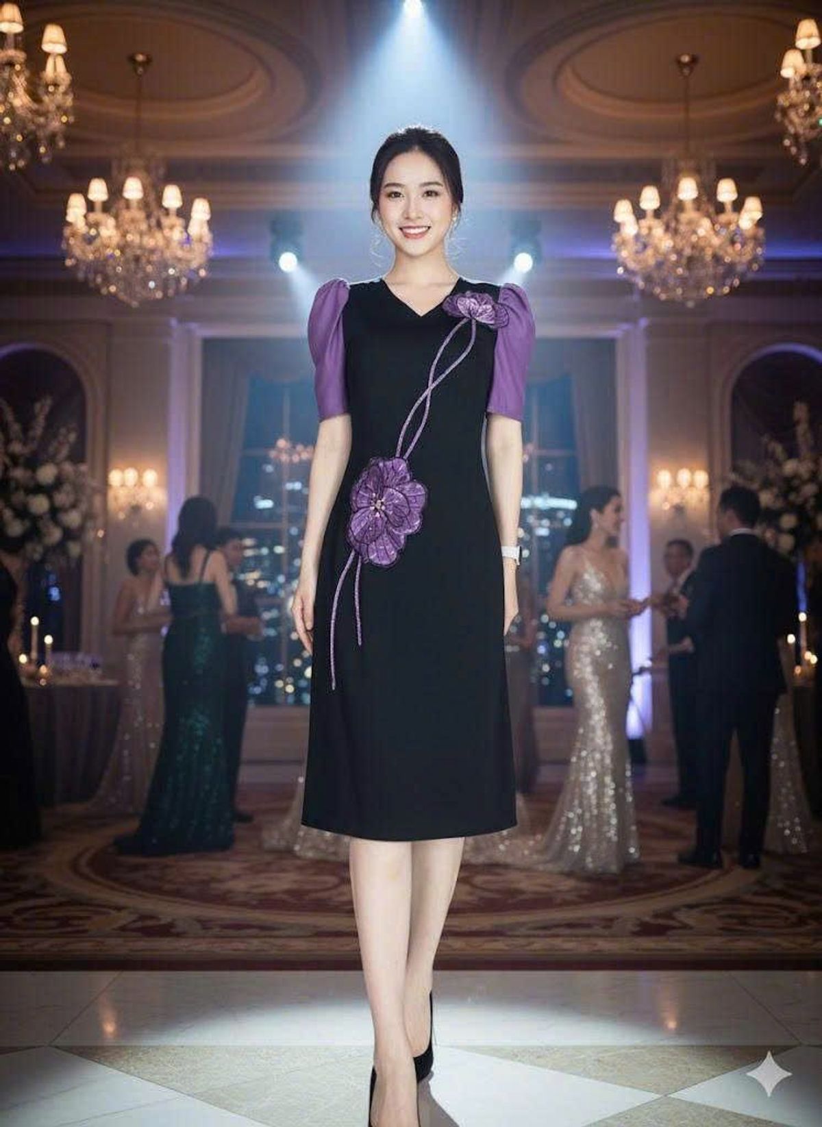 Đầm xòe nữ phối bông bụng dọc sang trọng hàng cao cấp