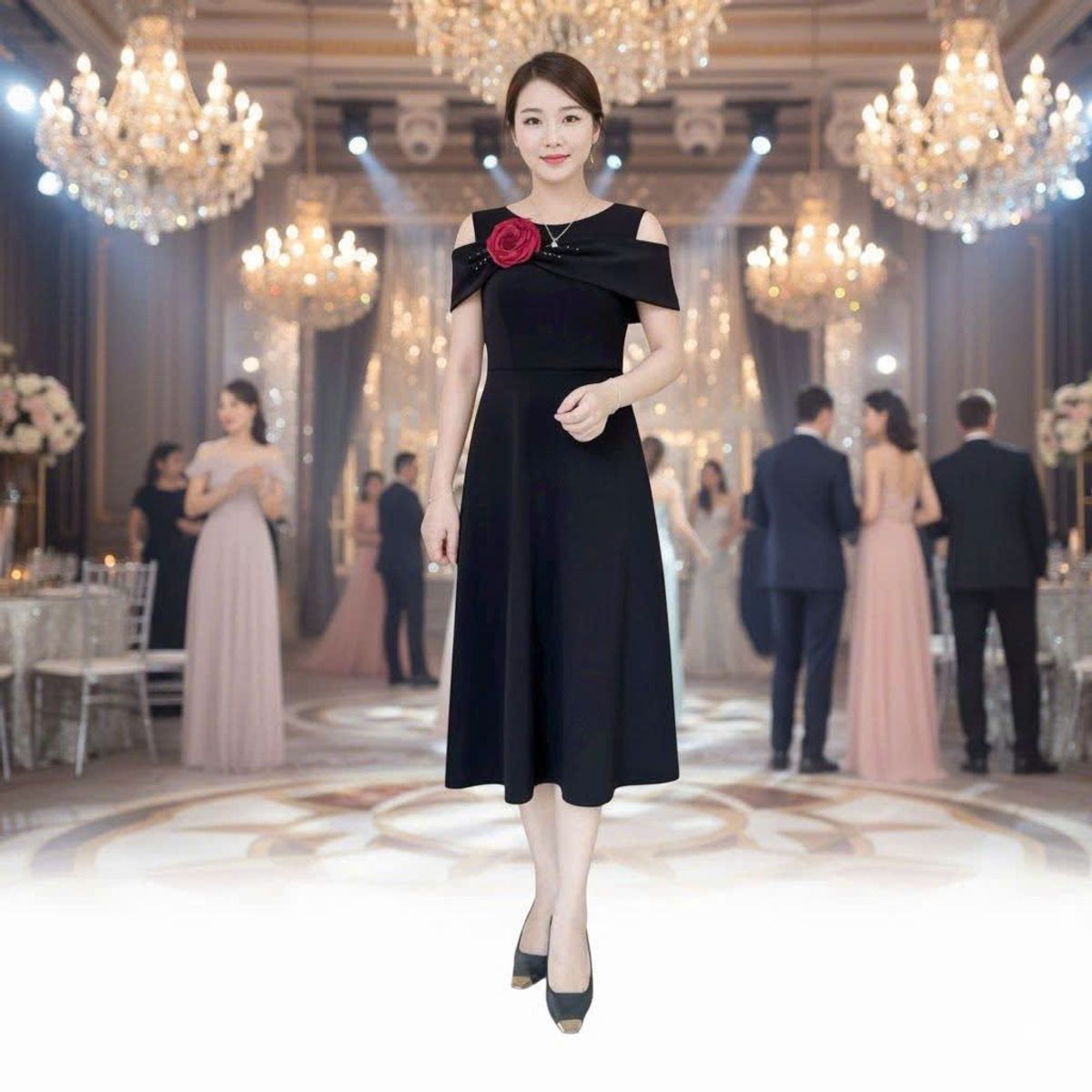 Đầm xòe nữ trung niên trễ vai cườm sang trọng hàng cao cấp
