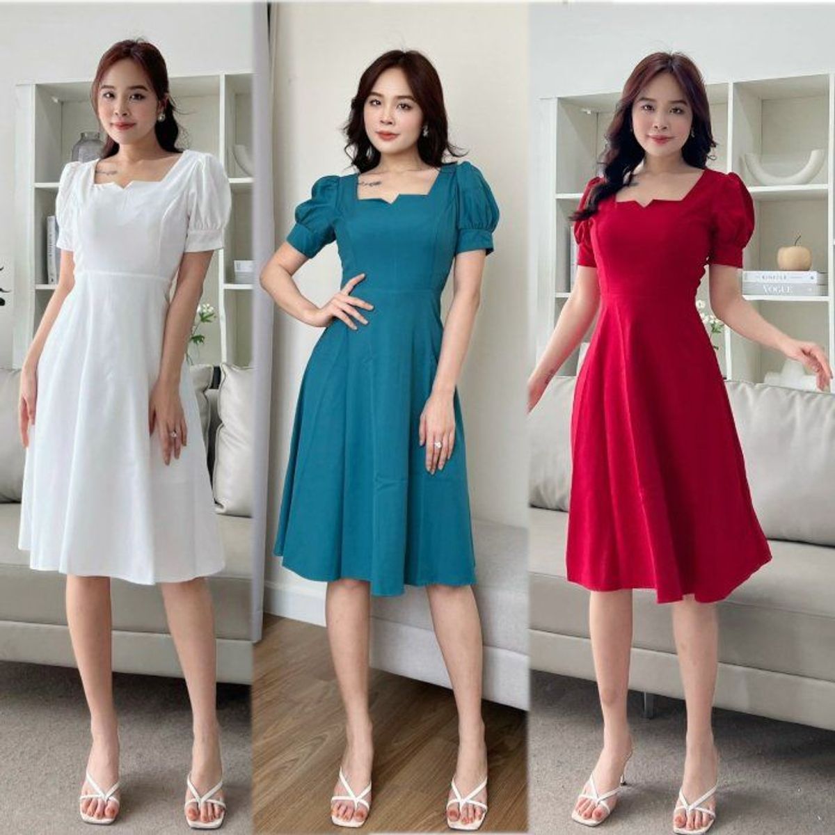 Đầm xòe tay phồng cổ vuông cách điệu - GR0233
