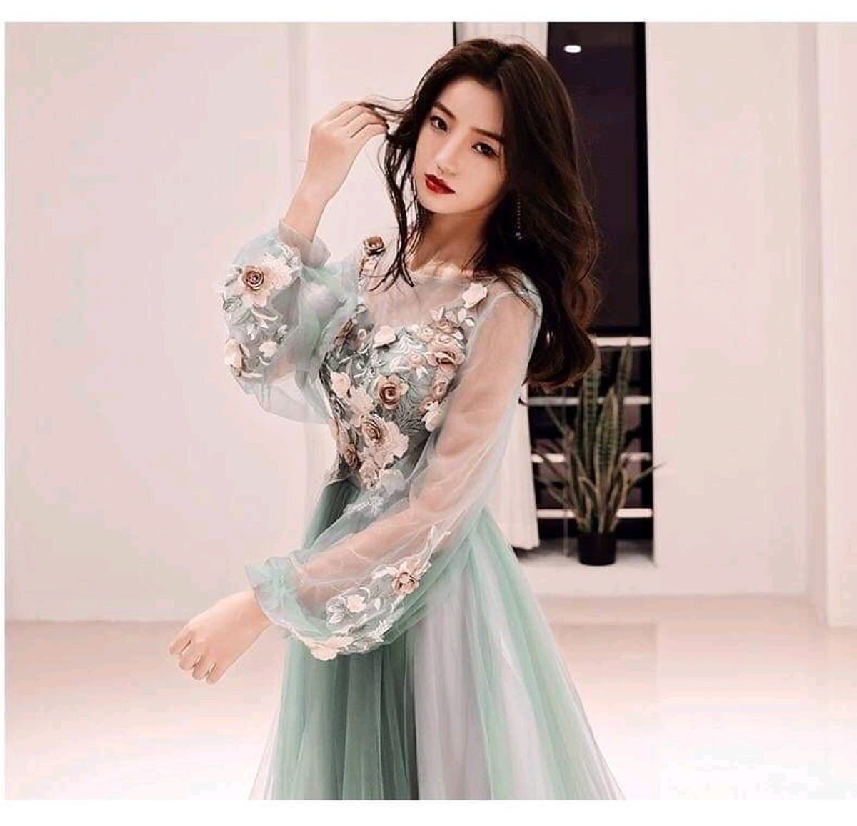 Chất liệu: lưới cao cấp , chất lưới xịn. Đầm đính hoa 3D đính kim sa trước ngực và tay áo. Tùng lưới xòe 3 lớp gồm 2 lớp lưới mềm và lót phi. Chất đẹp, , chuẩn bán sang. Thiết kế tay phồng kết hoa xinh xắn. Form dài thướt tha, xòe nhiều. Mẫu 1.6m. Đi giầy 8 cm chấm đất.