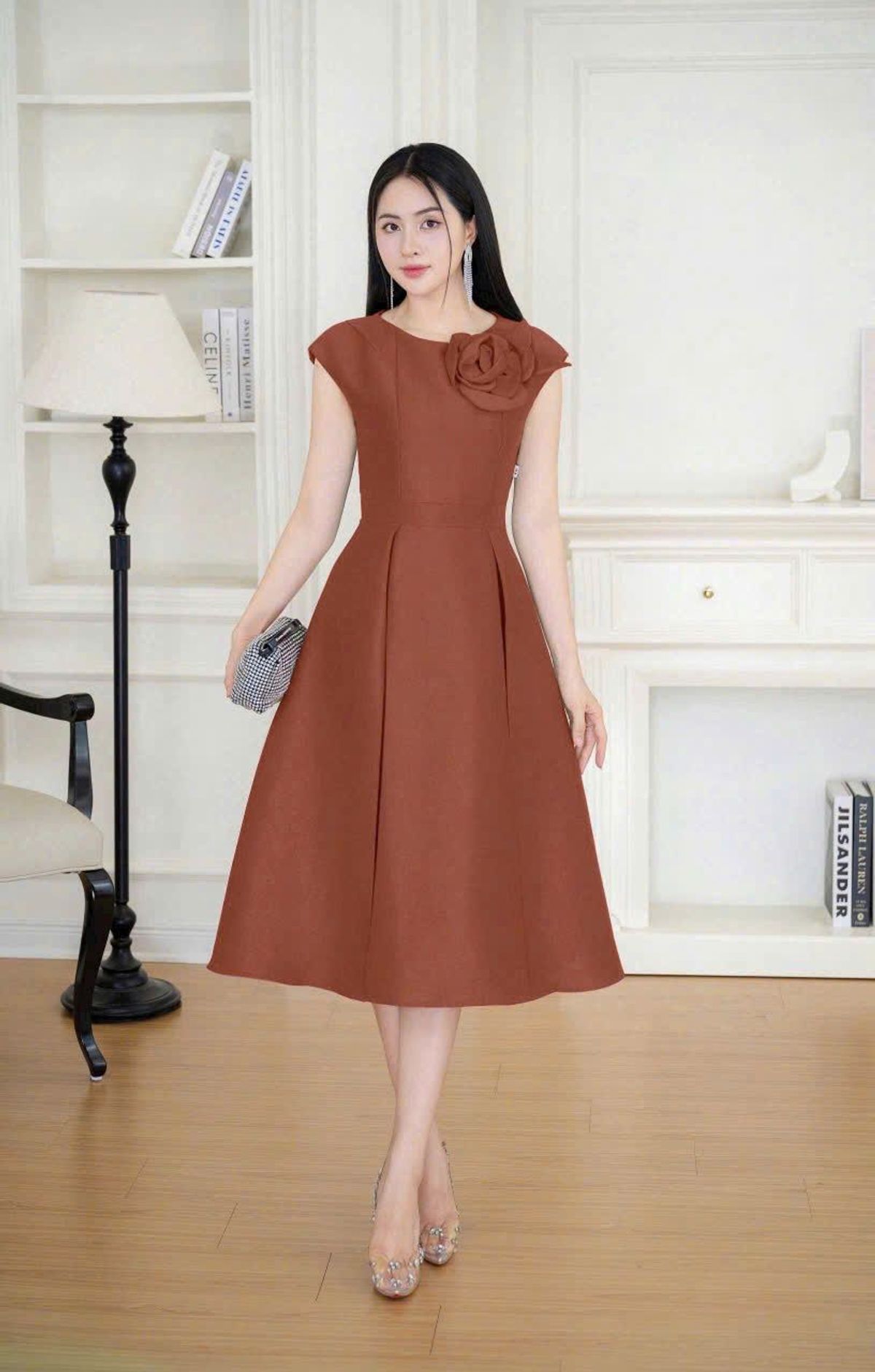 Đầm xòe Tùng xếp ly kèm bông sang trọng hàng cao cấp – Mã SP: Sk756334