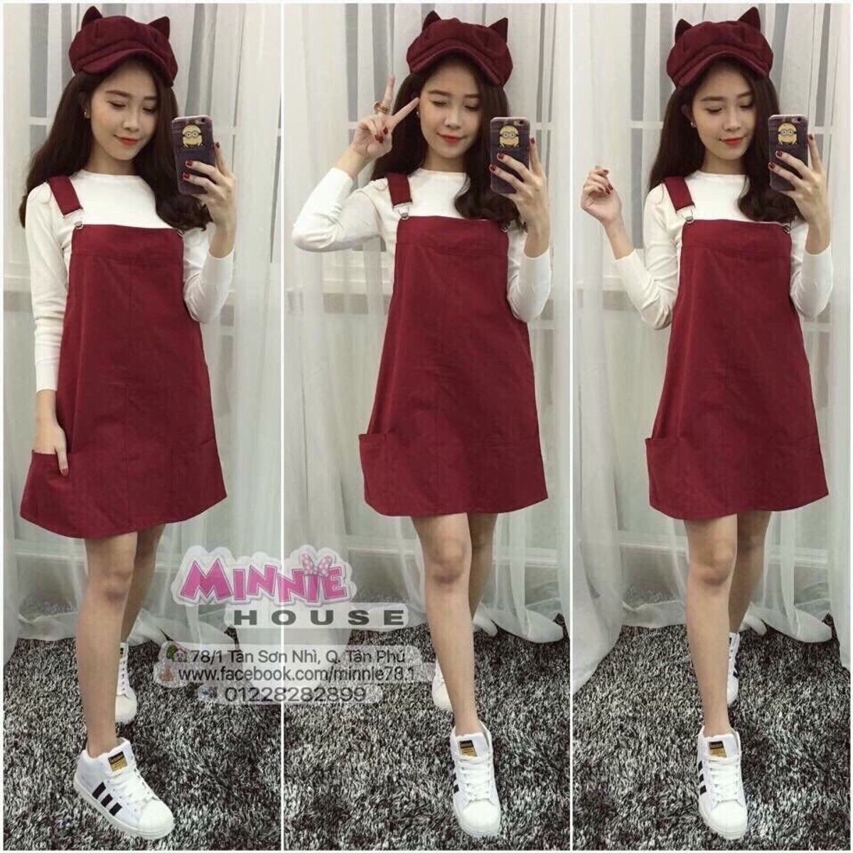Đầm yếm kaki đỏ 1 form giá sỉ/bán buôn