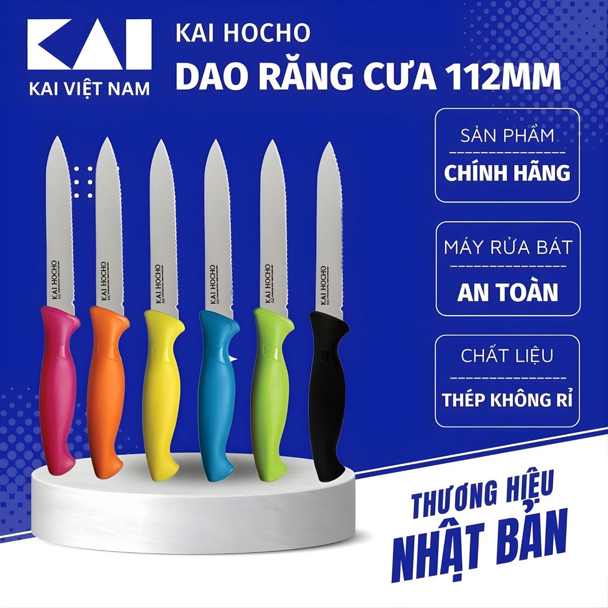 1/Thông tin sản phẩm: Dao gọt hoa quả lưỡi răng cưa 112mm KAI Indian Hocho Vegitable Knife bằng thép không gỉ cán nhựa PP nhiều màu
