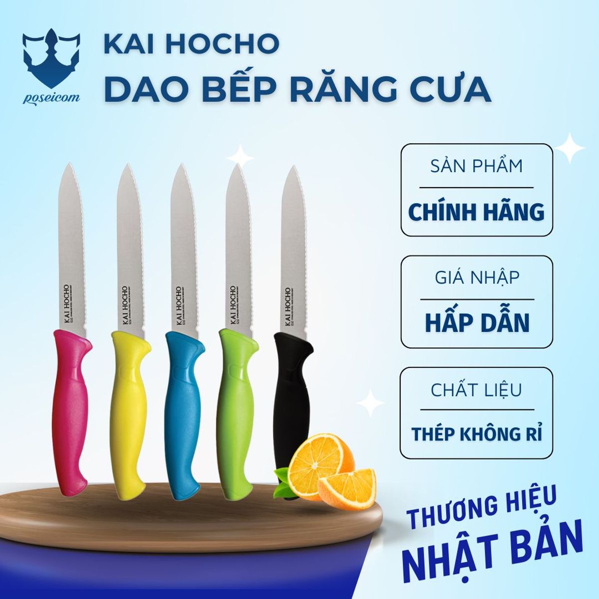 1/Thông tin sản phẩm: Dao gọt hoa quả lưỡi răng cưa 112mm KAI Indian Hocho Vegitable Knife bằng thép không gỉ cán nhựa PP nhiều màu