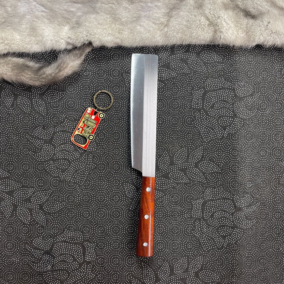 Đặc điểm nổi bật:- Lưỡi dao làm bằng thép không rỉ, độ cứng lên đến 60HRC- Nhập khẩu nguyên liệu và sản xuất tại làng nghề rèn thủ công đã có kinh nghiệm nhiều năm cha truyền con nối.- Cán được làm từ gỗ hương đá ốp vào cán dao và tán đinh không rỉ chắc chắn.