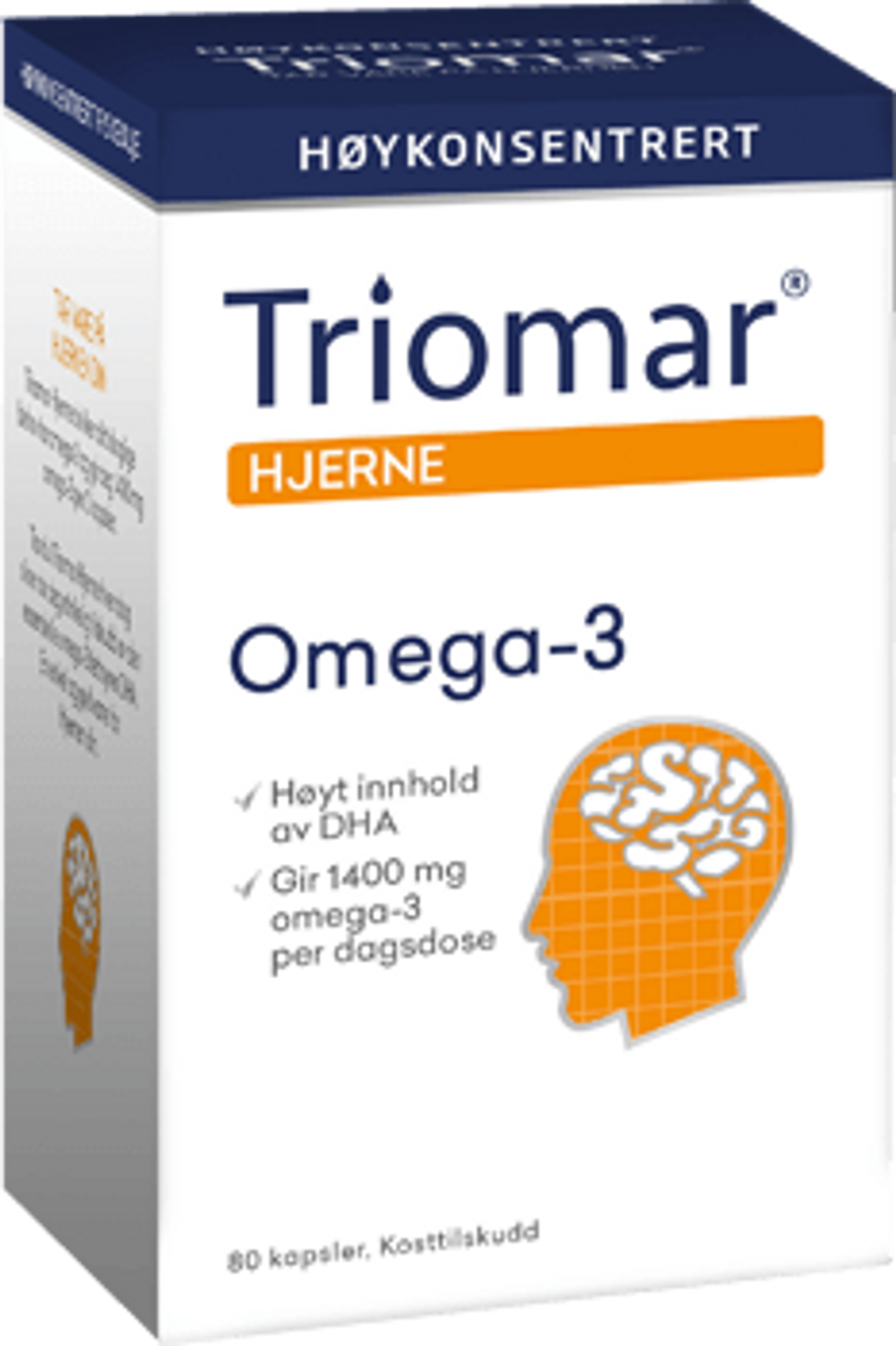 Dầu cá TRIOMAR HJERNE chính là sự kết hợp độc đáo giữa dầu cá đậm đặc 66% chứa nhiều các axit béo Omega-3 như EPA và DHA. TRIOMAR HJERNE có thể cung cấp lượng Omega-3 mà cơ thể cần trong một ngày, bên cạnh đó sản phẩm này còn có thể mang lại cho bạn 1400mg nếu sử dụng 2 viên một ngày.