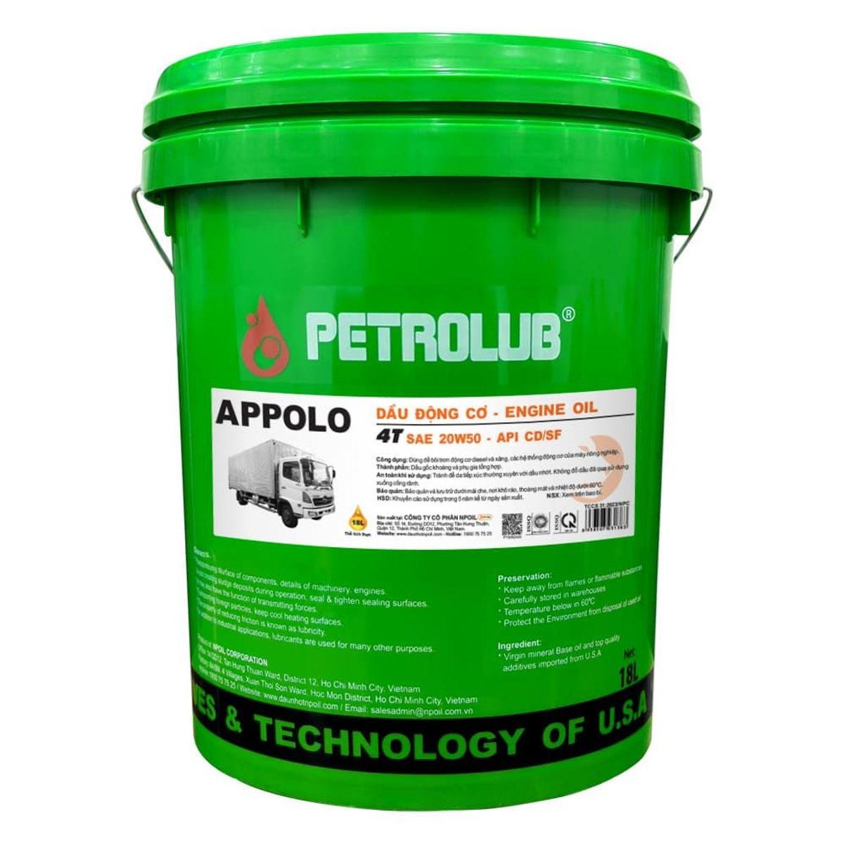 Dầu động cơ Petro Appolo 50 là dầu nhớt đơn cấp được sản xuất theo công nghệ tiên tiến, đáp ứng tiêu chuẩn API CD/SF và SAE 20W-50. Sản phẩm được đặc chế dành cho các loại động cơ Diesel và xăng hoạt động trong mọi điều kiện vận hành, kể cả khắc nghiệt.